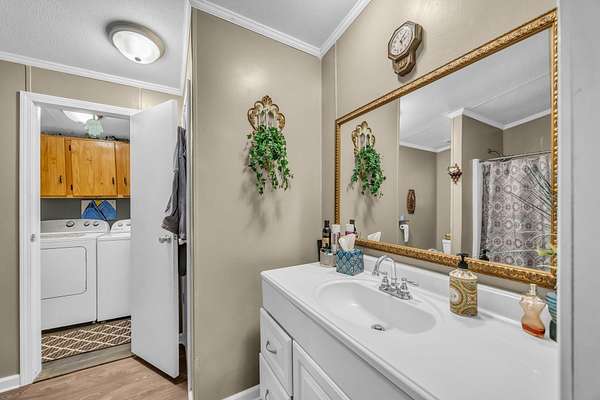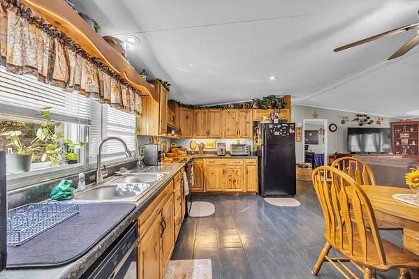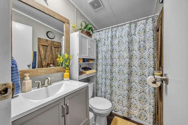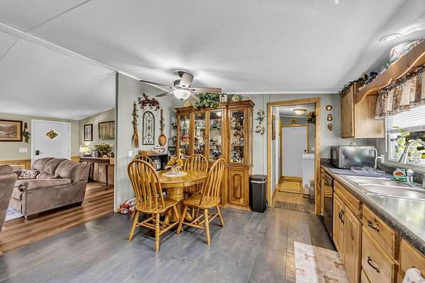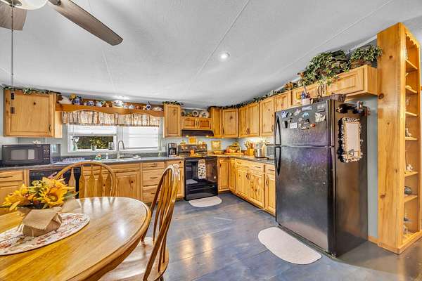 - Bathroom Mirror(s), Ceiling Fan(s), Eat-In Kitchen, Granite Counters, Open Floorplan, Pantry, Primary Downstairs, Split Bedrooms, Walk-In Shower