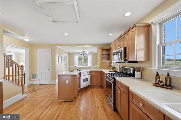 This one truly has it all-blending old-school charm with tasteful modern upgrades. No stone has been left unturned in this beautifully maintained 1900's craftsman home. The semi-open main level features a gourmet kitchen with stainless steel appliances and gas cooking, along with formal living and dining spaces, an eat-in kitchen area, and a sun porch filled with natural light from skylights. Hardwood floors and crown molding run throughout most of the home. The upper level offers four bedrooms and two full baths. The spacious primary suite includes walk-in closets and spa-like bath with double vanity, jetted tub, and separate walk-in shower. BONUS?? Of course! Third level bonus space complete with full bath, open living and includes pool table. Perfect for game room, teenage suite or workout space. Unfinished basement for added storage and built-in shelving. Step outside to your private oasis with extensive landscaping, mature trees for shade, and a semi wrap around porch leading to an extra large deck for ideal entertaining. Additional features include a detached garage with 100-amp electric and natural gas hook-up availability, oversized garden shed and a fully fenced pasture ideal for animals or hobby farming. The paved driveway offers dual access points-one from route 7 and another entrance on Russell Road for added safety and convenience. Roof 7 years young and upgraded siding. Located just off route 7 making this ideal for commuters.