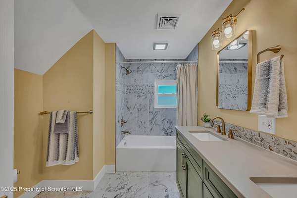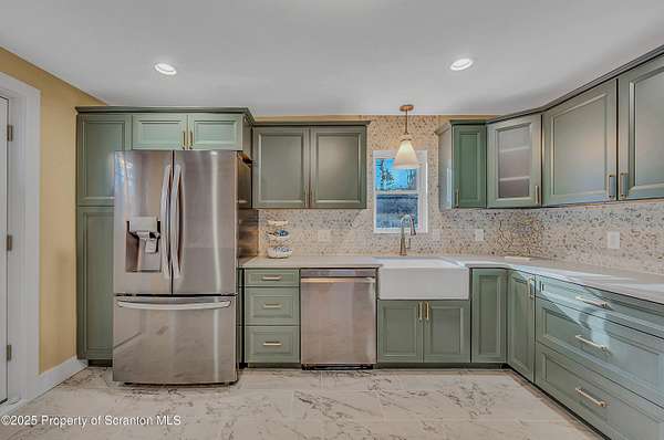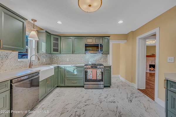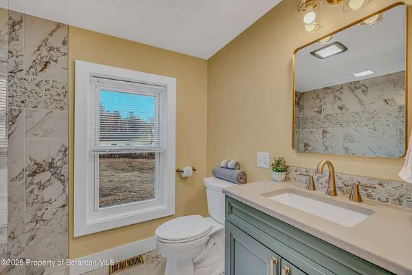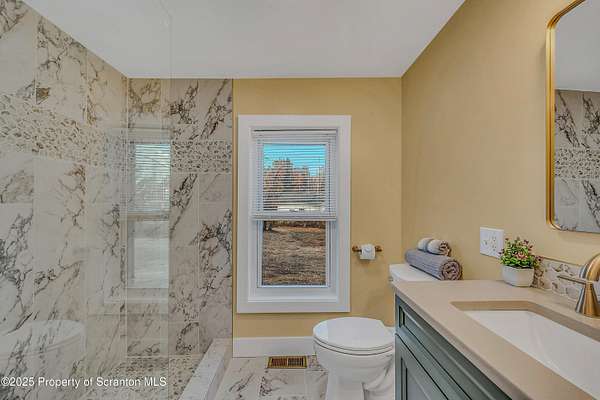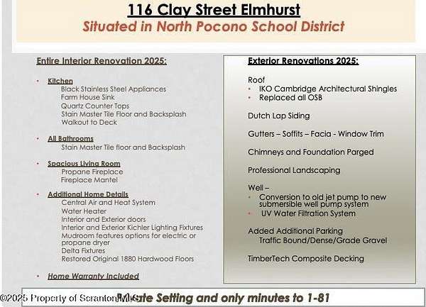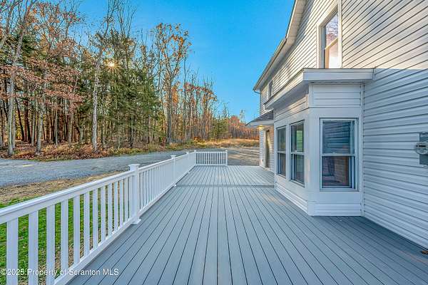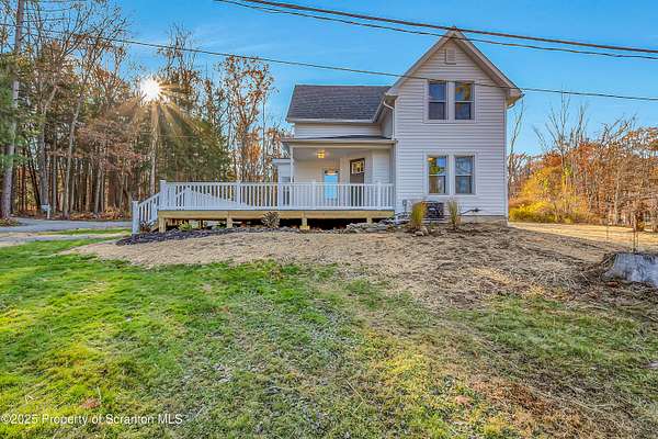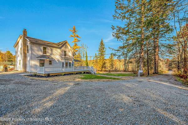 Your private sanctuary awaits! Nestled on 8.75 acres in the North Pocono School District, this beautifully renovated home blends rustic charm with modern luxury. Featuring high-end finishes and exceptional craftsmanship, this property offers flexible living spaces perfect for both entertaining and unwinding. The custom kitchen boasts premium cabinets, quartz countertops, and sleek black stainless-steel appliances. Enjoy the charm of a welcoming front porch and an expansive TimberTech composite deck, perfect for outdoor gatherings. Conveniently located, this property offers privacy and space without sacrificing urban accessibility. Come and see it for yourself--dream big and make it yours!