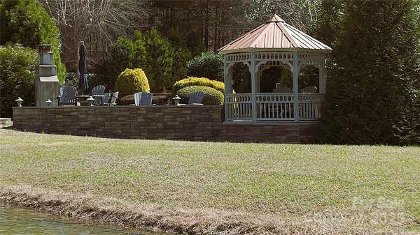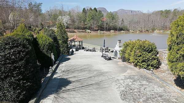 Welcome to Apple Valley Farm Motorcoach Resort, luxury Class A RV community in picturesque Rumbling Bald on Lake Lure, NC! This motorcoach lot features a concrete parking pad, stonework veranda, gazebo, and outdoor masonry fireplace, all overlooking a serene 3-acre pond. Evergreen landscaping enhances privacy, creating the perfect retreat. Plus, the on-site farm stand offers locally sourced produce and an owner's only clubhouse Owners enjoy exclusive access to a 25-foot pontoon boat at Rumbling Bald Marina and SHARED POA guest passes for Rumbling Bald amenities, including a private beach, 3 pools, fitness center, tennis/pickleball courts & two championship public golf courses. Plus area hiking & biking trails, local restaurants, & Cafe With short-term rentals allowed, this lot offers both relaxation and investment potential. Don't miss your chance to own a piece of paradise in one of North Carolina's most unique and luxurious RV resorts! Class A Motorhomes Only. All furnishing convey
