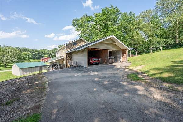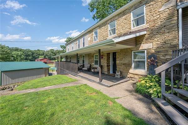 Own a piece of history with one of Westmoreland County's oldest, historical and most remarkable homes, thoughtfully updated while preserving its charm. This immaculate residence offers three full levels of living space. The first level includes multiple expansive living areas and a remodeled chef's kitchen on the main floor. Upstairs features large bedrooms, laundry, and walkout access to carports and the upper driveway. The finished lower level includes a game room, tons of storage, and opens to a second driveway with a detached 2-car garage- for car enthusiasts or hobbyists. Outside, enjoy wrap around porches with breathtaking ridge views across the ridge. Great for grilling out and entertaining guests. Listen to your own babbling brook, or enjoy your gazebo, hot tub, and a spacious yard--all tucked away on a peaceful dead-end road.