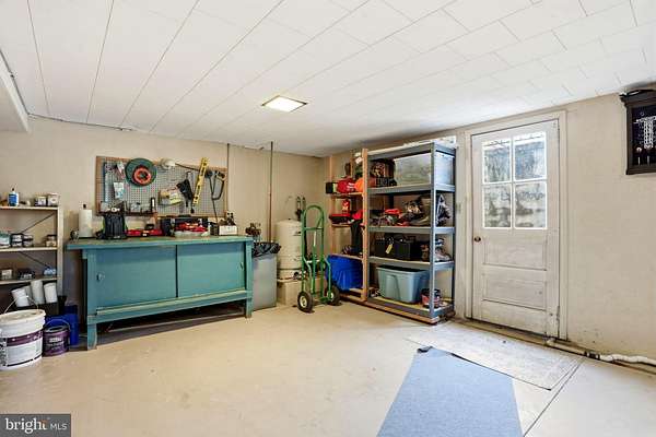 Amazing & Rare opportunity awaits for this unicorn of a property! Enjoy serene country living in this large & well maintained ranch home w/ gigantic finished basement nestled on a massive, flat 1.5 acre backing up to open land owned by the borough. A long welcoming driveway leads to oversized detached garage w/ separate large shed behind it. Enjoy views of the property from the convenient covered porch. Inside is freshly painted and offers an awesome straight-thru open layout designed for effortless living & entertaining. Beautiful refinished hardwood floors, the large living room boasts a wood burning fireplace and bay window upgraded w/ power blinds for abundant natural light & easy control, and flows seamlessly to the open formal dining room and kitchen both w/ durable LVT wood flooring. The L shaped kitchen offers plenty of cabinets and counter space including small island and matching appliances including dishwasher. 2 large bedrooms and a full bath w/ tub/shower combo finish off the 1st fl. 2nd fl attic area offers open space great for storage and a large bedroom. The HUGE finished dry basement adds tremendous value and endless possibilities w/ a 4th bedroom and full bath w/ stand-up shower, great for in-law suite, family room, gym etc. or all the above! 3 heating zones (1st fl plus 3rd & 4th bedroom). Well maintained with a 10 year old roof, great layout & living options, and incredible private grounds for gardening, play space or simply enjoying wildlife & open skies, this is a rare find! Perennials bloom throughout the year adding beautiful colors to the landscape. Near renowned Green Lane Park's endless recreation & tucked away in quiet yet convenient Green Lane, don't miss this opportunity!