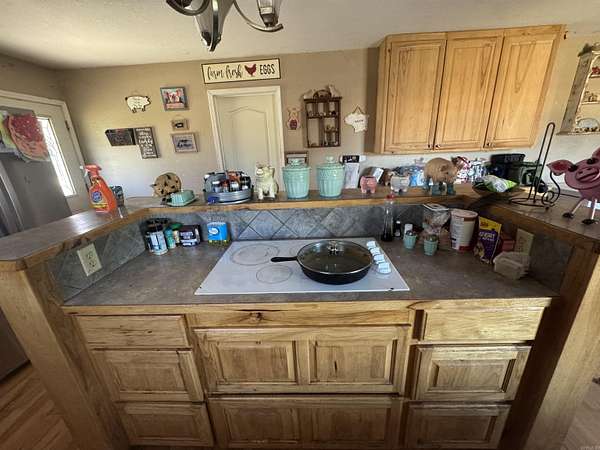This 4-bedroom, 2-bath home in Cove, Arkansas, offers comfort and country charm on a beautiful property with both open and wooded areas. The home sits on a mostly cleared front yard and features a small pond, a mature fruit tree producing plums, pears, and peaches, plus a chicken coop for those who enjoy hobby farming. A 40x30 concrete slab includes a 30x30 shop with two garage doors--perfect for storage, projects, or a workspace. The property also has a well house that can be used for extra storage and a large carport that fits an RV, complete with an RV hookup nearby. The master closet doubles as a tornado shelter, providing added peace of mind. The wooded section of the property lies across the legal easement (Hendricks Lane), offering privacy and natural beauty. Conveniently located just minutes from ATV trails that lead to Wolf Pen Gap, this home combines functionality, outdoor enjoyment, and rural appeal. The seller is currently making updates, including fresh paint and new trim, giving the home a refreshed look.
