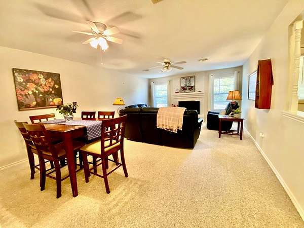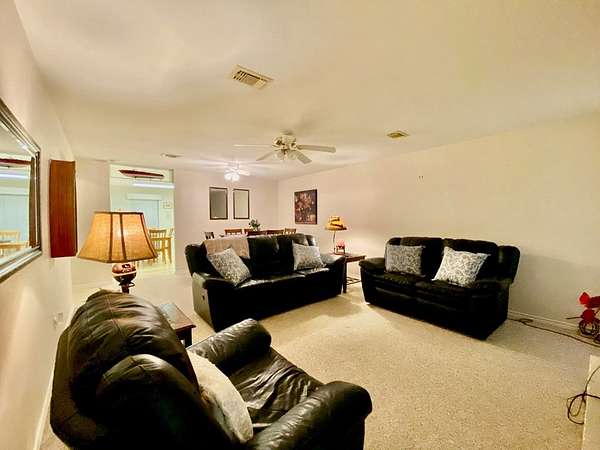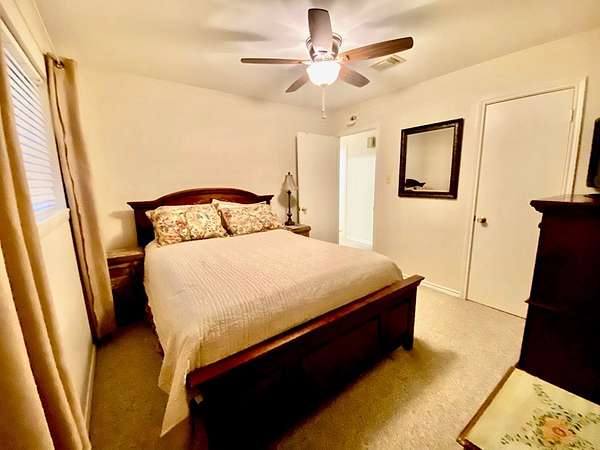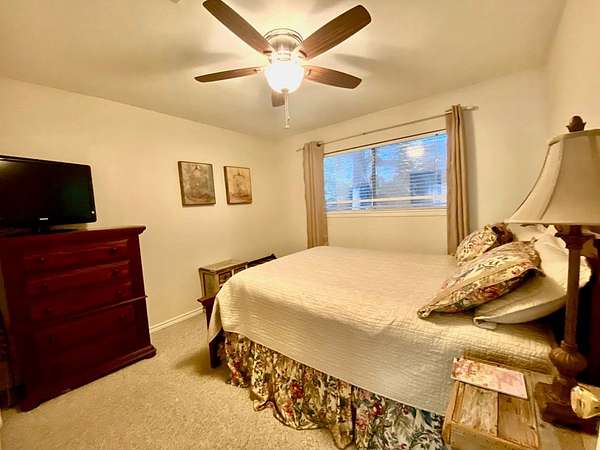This beautiful three bedroom, two bath home is located just off the waters of Houston County Lake and would be an ideal weekend retreat for the family to enjoy. The efficiently built home is situated on two pretty tree-shaded lots, with two additional adjoining lots giving you plenty of space for gardening or enjoying the outdoors. Inside, the kitchen is styled with durable Corian countertops, double stainless-steel sink, nice pantry closet, and a tucked away laundry. Open the blinds and bring in the natural lighting in the spacious family room that has a brick, wood burning fireplace, and dining area. Just down from the foyers are two guest bedrooms with nice sized closets that share a hall bath. The primary bedroom at the end of the hallway has all the space a could ask for and is equipped with its own private bathroom that has been recently updated. Ownership comes with full access to the private subdivision park to take the family down to the lake and has its own boat launch.