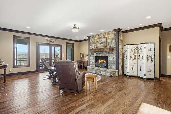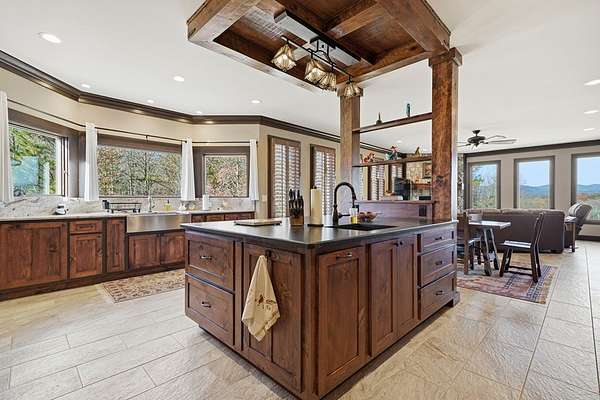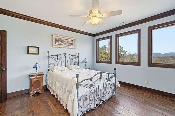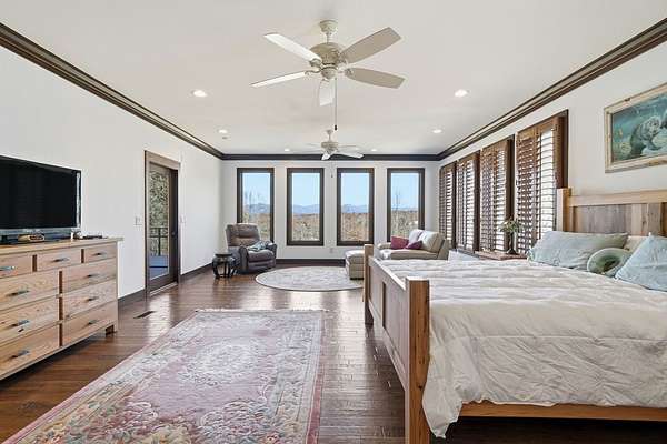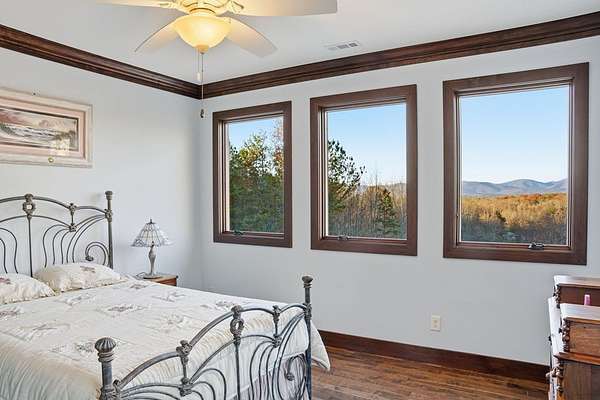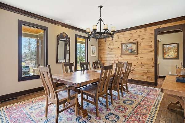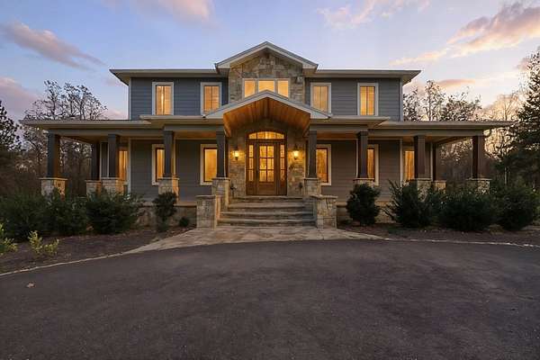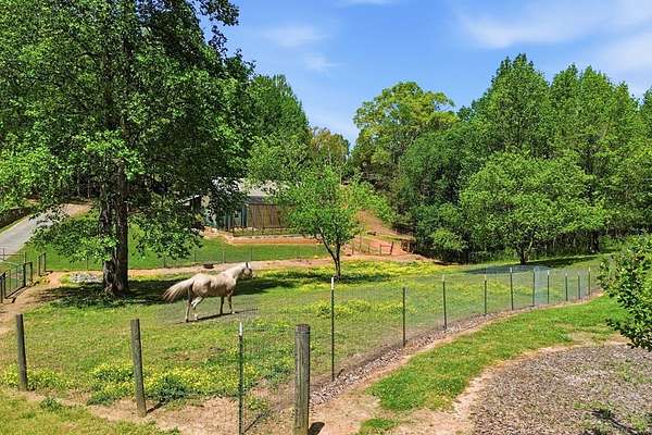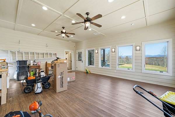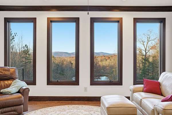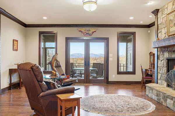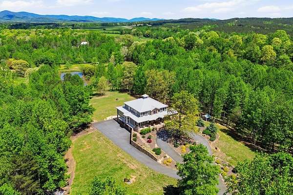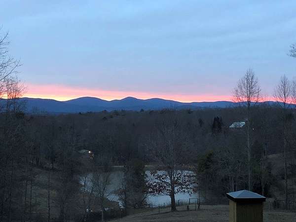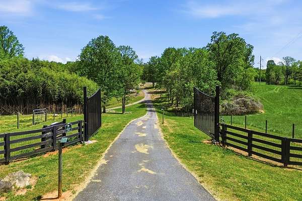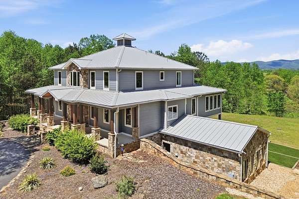 Custom-built mountain retreat on 6 rolling acres with gorgeous mountain views. Open-cell foam insulation in walls and rafters, and a 26-gauge standing seam metal roof with warranty through 2035. Entire ground level exterior is stone with hardi elsewhere, plus stone retaining walls on both sides. Porch/deck are metal framed. Andersen 400 windows + Andersen E-Series and Andersen commercial grade multi-locking doors. Amarr Classica premium carriage doors. Inside, the main/upper levels have real ” rustic hardwoods, hickory stair treads, rough-sawn pine & Mountain Laurel railings, transoms throughout. It's serviced by two Trane high-efficiency dual fuel HVAC systems, and an 80-gallon water heater, and 2nd 50-gallon unit. Two stone fireplaces (Heat-n-Glo + Monessen), a smart-lift foyer chandelier and central vacuum and garage vac. This 3-story home comes with the convenience of an elevator to all floors. While its laundry is on the lower level, its also plumbed for a 2nd laundry on the top floor. Chef's kitchen w/ custom cabinets, granite counters/backsplash, Wolf dual-fuel range + warming drawer, Vent-A-Hood liner, Sub-Zero refrigerator with matching cabinetry panels, farm sink + prep sink, pot-filler, Moen/Delta fixtures, pantry w/rough-sawn pine cabinetry. Main level primary suite captures north and east views with sitting area and plantation shutters. Spa bath: Kohler cast-iron tub, Brizo tub filler with handheld shower, tiled shower w/Kohler thermostatic controls, 2 walk-in closets with custom built-ins. Upper level: 3 BRs, hall bath and Jack & Jill bath — all with granite, tile showers, walk-in closets. Large rec room with northern mountain view wall of glass. You could use part of the land for horses, could possibly board your horse(s) at the adjoining 55-acre horse farm, which has stables, a lighted arena, etc. Direct access from property via foot or horse to deeded equestrian trail that forms the outside boundary of this property and the adjoining horse farms.
