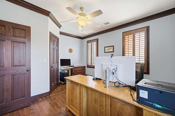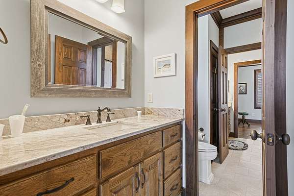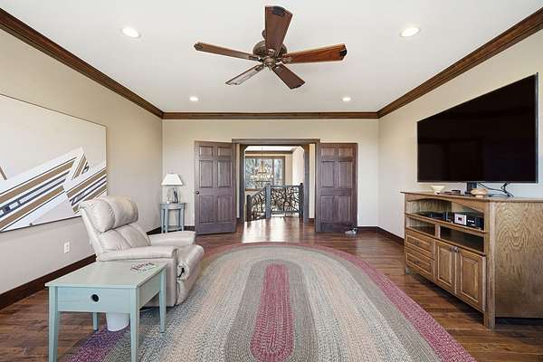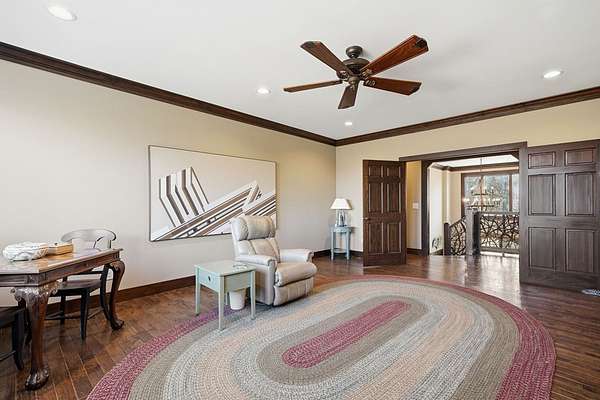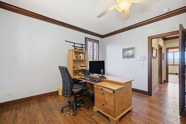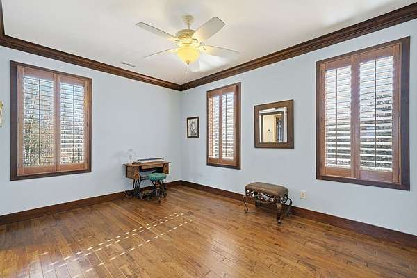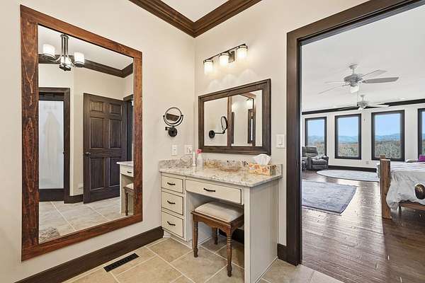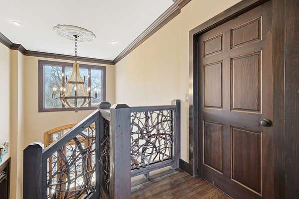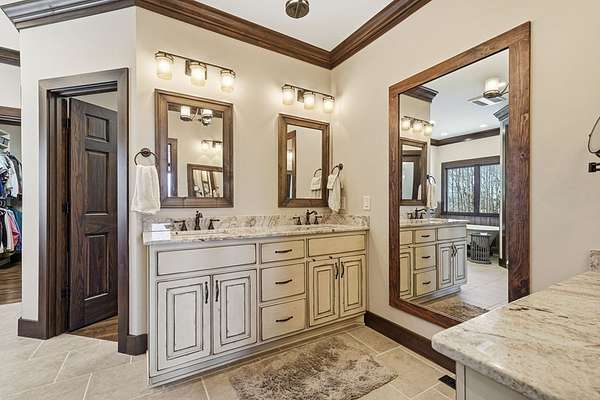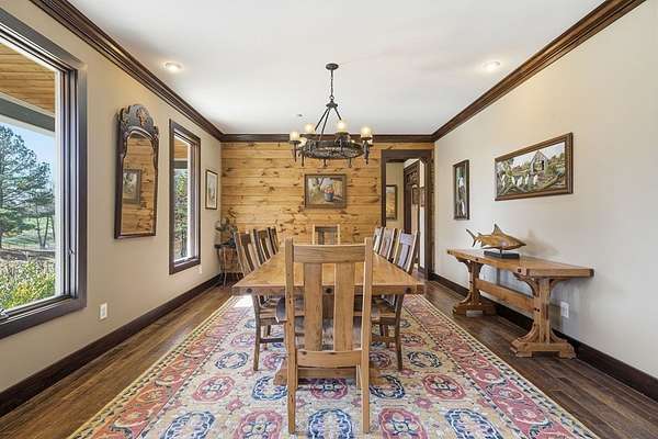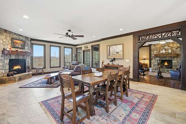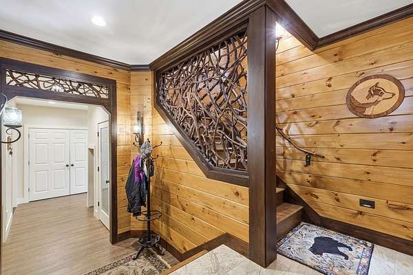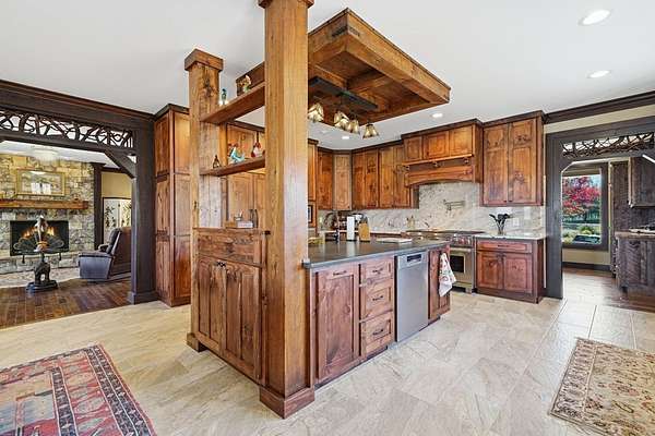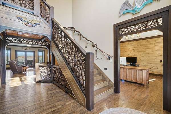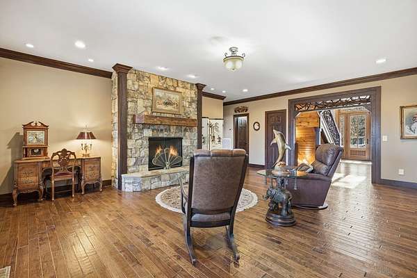 Custom-built mountain retreat on 6 rolling acres with gorgeous mountain views. Open-cell foam insulation in walls and rafters, and a 26-gauge standing seam metal roof with warranty through 2035. Entire ground level exterior is stone with hardi elsewhere, plus stone retaining walls on both sides. Porch/deck are metal framed. Andersen 400 windows + Andersen E-Series and Andersen commercial grade multi-locking doors. Amarr Classica premium carriage doors. Inside, the main/upper levels have real ” rustic hardwoods, hickory stair treads, rough-sawn pine & Mountain Laurel railings, transoms throughout. It's serviced by two Trane high-efficiency dual fuel HVAC systems, and an 80-gallon water heater, and 2nd 50-gallon unit. Two stone fireplaces (Heat-n-Glo + Monessen), a smart-lift foyer chandelier and central vacuum and garage vac. This 3-story home comes with the convenience of an elevator to all floors. While its laundry is on the lower level, its also plumbed for a 2nd laundry on the top floor. Chef's kitchen w/ custom cabinets, granite counters/backsplash, Wolf dual-fuel range + warming drawer, Vent-A-Hood liner, Sub-Zero refrigerator with matching cabinetry panels, farm sink + prep sink, pot-filler, Moen/Delta fixtures, pantry w/rough-sawn pine cabinetry. Main level primary suite captures north and east views with sitting area and plantation shutters. Spa bath: Kohler cast-iron tub, Brizo tub filler with handheld shower, tiled shower w/Kohler thermostatic controls, 2 walk-in closets with custom built-ins. Upper level: 3 BRs, hall bath and Jack & Jill bath — all with granite, tile showers, walk-in closets. Large rec room with northern mountain view wall of glass. You could use part of the land for horses, could possibly board your horse(s) at the adjoining 55-acre horse farm, which has stables, a lighted arena, etc. Direct access from property via foot or horse to deeded equestrian trail that forms the outside boundary of this property and the adjoining horse farms.