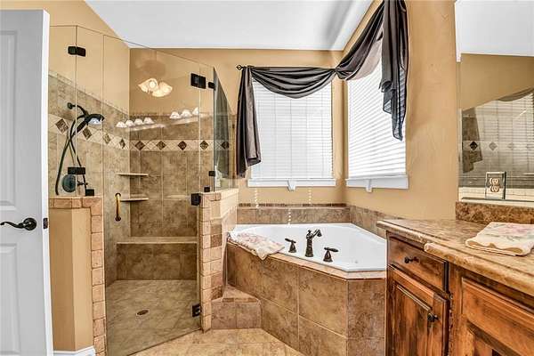Discover timeless elegance on a quite tree canopied street in the Woodlands of Parker Cty. This thoughtful UPDATED residential harmoniousy blends classic architecture with modern comfort for an exceptional living experience. The main living areas are complemented by hardwood floors, fireplace, and oversized glass window that flood the foyer with natural light. Mature oak trees frame the property. The gourmet kitchen features a large island, gas cooktop, and custom cabinetry. The primary suite is a private retreat with a spa-like bath including a soaking tub, oversized steam shower, quartz countertops, and a custom walk-in closet. Each secondary bedroom includes its own ensuite bath. The dedicated media room is complete with large couches, large tv, audio equipment, popcorn equipment and TWO very large closets,attached two garage and another separated two car garage offers flexibility for work and play. Barn, shops and horses are welcome creating a rare blend of freedom and a first-class living.