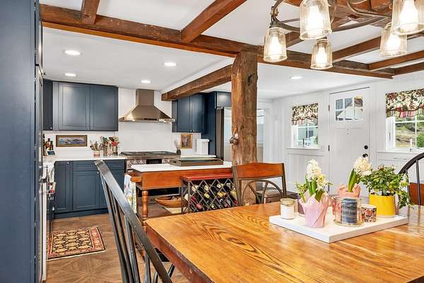 Great IMPROVED price for exquisite restored farmhouse in ideal Wolfeboro location. 2 acres surround this well proportioned 3 BR/4 Bath farmhouse with 2375 sq. ft of gracious living area and 1800's hand-hewn beamed barn. Home has been lovingly update in 2024/25 with all modern amenities including first floor primary bedroom suite w/ walk-in closet, new high-end gourmet kitchen & all customed tiled baths. Beautiful upscale renovation of this 1812 gem located in convenient area of South Wolfeboro for ease of commute and access to all Lake activities: dining, shops, beaches, services & schools. Seller has added high-end, high efficiency windows throughout, luxury kitchen amenities (including $8000 chefs' gas range by Dacor). Upgrades include: central A/C, pocket garden accessed by dual French doors; entry deck for grilling & entertaining; wood-burning fireplace relined & restored; plumbing/electrical systems re-done; new & restored flooring; interior & exterior paint; new roof and many other features take the guess-work out of owning a vintage home while maintaining the sought-after charm & historical features. Seller offers a 1 year Buyer's Home Warranty consistent with a top-quality home in this gently terraced idyllic setting. Pad site prepared for future garage/ADU design for your potential expansion. Air BnB Rental history available ($350/night in-season rate). Additional adjacent 2 ac. view lot available for additional $89,000 (sub-division pending).