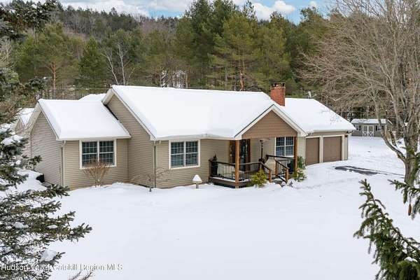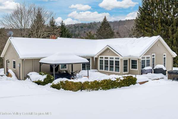 Open House Sun Feb 15th 2-4 pm: Fall in love with the ease of single-level living wrapped in privacy, beauty, and timeless style. Set on three peaceful acres, this thoughtfully reimagined home feels like a hidden retreat - close to everything, yet wonderfully your own. From the moment you enter, the home welcomes you with warmth and refinement. Arched openings, crown moldings, and curated details create an elegant flow from room to room. The chef's kitchen, anchored by an oversized center island, naturally becomes the heart of the home - a place for morning coffee, holiday gatherings, and lingering conversations. Sunlight pours into the vaulted sunroom, where a wall of glass frames the backyard and opens to expansive decking beyond. Outside, a heated in-ground pool glistens in summer, while mature trees and adjoining private land provide a serene backdrop in every season. In cooler months, gather around the original bluestone wood-burning fireplace after a days adventure. The primary suite offers a spa-like bath with walk in closet, while two generous bedrooms share a Jack-and-Jill bath. A dedicated bar room sets the scene for celebrations, and the finished lower level with private bath offers flexibility for guests, recreation, or a peaceful escape. An attached two-car garage and thoughtfully designed mudroom with custom built-ins provide both convenience and everyday elegance. Modern comforts - central air, whole-house generator, updated mechanicals, and a freshly paved driveway - ensure effortless living year-round. The three flat acres invite gardens, firepit, and playset- a place where memories are made in every season. Meticulously maintained, just minutes from town, skiing, golf, and dining, yet worlds away when you arrive. A rare opportunity to own something truly special. A 3D Walkthrough Tour is available in the digital Lookbook or by request from the listing agent.