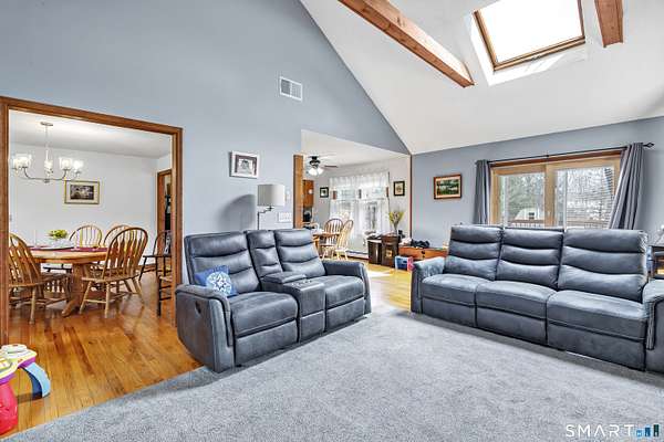 Well-maintained 4-bedroom Colonial offering over 3,200 square feet of living space, set on approximately 1.59 acres in New Milford. The home features a functional layout with multiple living areas. The main level includes a bright living space and an additional room suitable for a home office or flexible use. The upper level offers four bedrooms 2 full bath with ample closet space. The finished lower levels offers a versatile playroom/recreation space. Along with an easy access utility room. Outdoor features include a patio, pool, gazebo, fire pit and open yard area, along with mature landscaping. Additional features include a 2-car garage, walkout lower level, newer well pump, solar and a whole-house generator. Conveniently located near local shopping, dining, and major roadways.Property to be sold as-is.