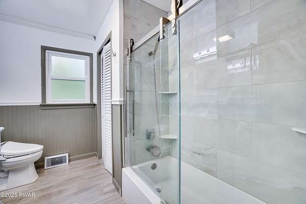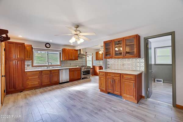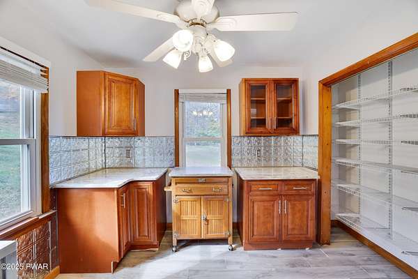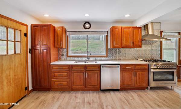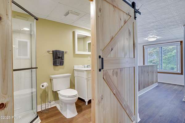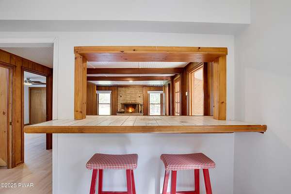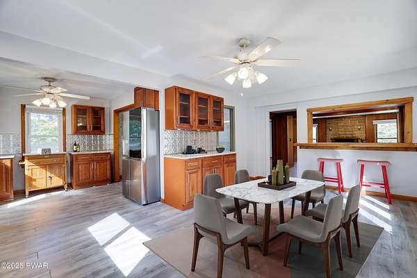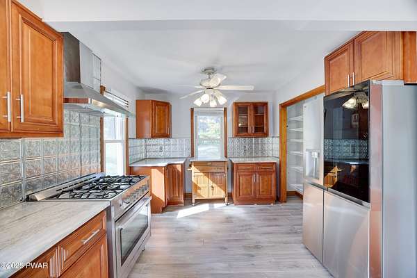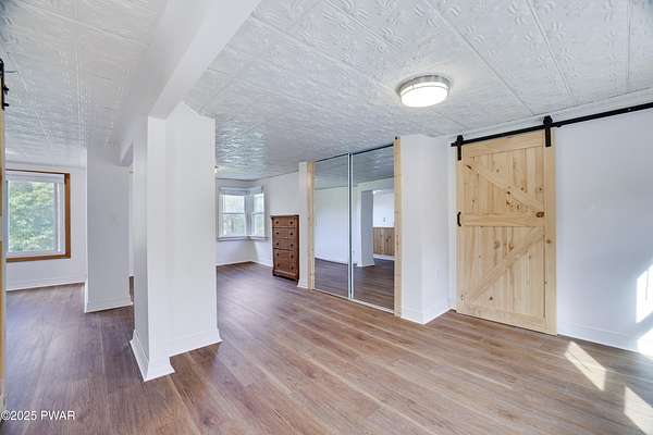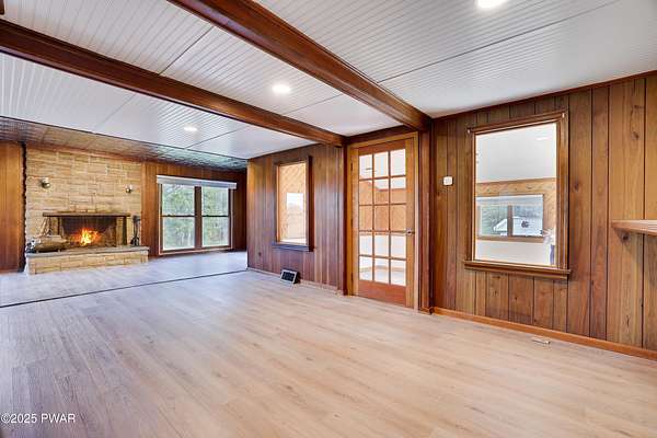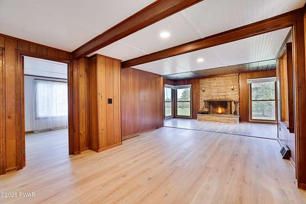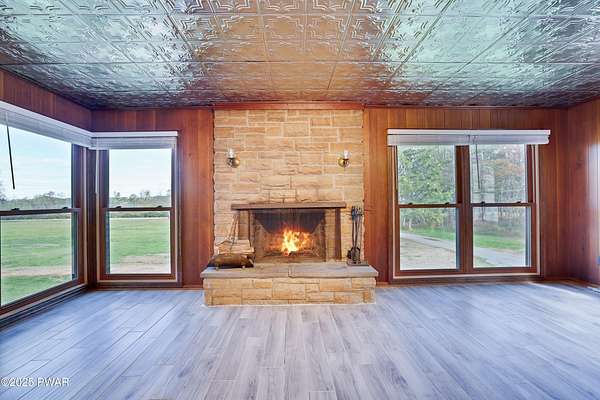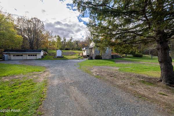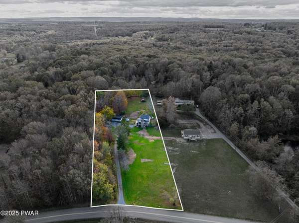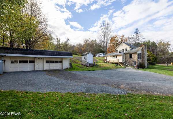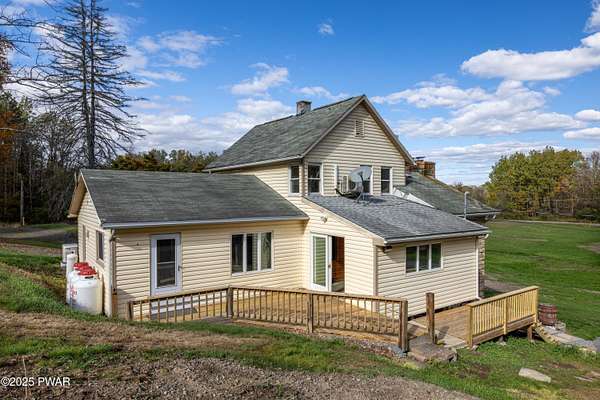 Updated 1900 Farmhouse on 2.3 Acres - No HOA- Oversized, 2-Car Garage!Discover the perfect blend of vintage charm and modern living in this fully renovated farmhouse built in 1900, set on 2.3 peaceful acres with no HOA restrictions bordering 48 acres of woodland beauty. This unique property offers character and versatility, ideal for those seeking a lifestyle rooted in history with all the comforts of today. The gourmet kitchen features new, stainless steel appliances, gas cooking, granite countertops, and plank, porcelain tile floors. Architectural features such as the tin ceilings and exposed beams make this home extra special. The Living Room has a wood burning fireplace and all new windows. The main floor has 2 bedrooms (one can be used as an office or game room). The upper floor has a spacious primary suite created by merging two former bedrooms into one, offering a luxurious retreat with a full en-suite bathroom. The Fujitsu Split Unit keeps the upstairs comfortable with AC & heating. The home has a brand new septic system, updated electrical panel & newer furnace!! The outside highlights include the historic Milk House, a rare gem from the original homestead. There is also an oversized, 2 car garage with a separate electric meter for flexible use as a workshop or hobby area. The new deck has views of the expansive yard with mature trees and open space for gardening, recreation, or future expansion. A peaceful country setting with room to roam, yet close to recreational areas including Lake Wallenpaupack and the historic towns of Honesdale and Hawley (named the top best kept secrets of the north Pocono Mountains).