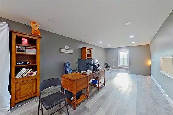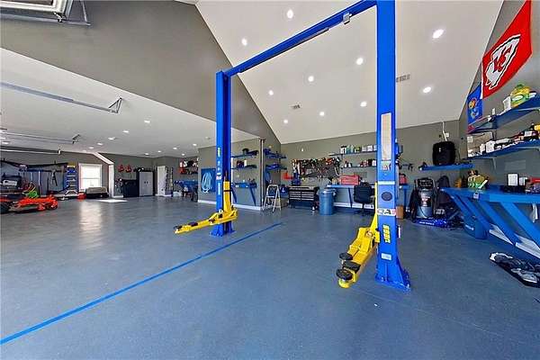 Here's an exceptionally constructed, like-new luxury home on approximately 5.63+/- acres in a gated community with pool house and pool amenities. This impressive 3-story residence blends grand entertaining spaces with thoughtful daily-living features such as multiple walk-out tiled balconies, elevator access, abundant concrete parking, and private acreage combine to create a rare offering. As you arrive the plentiful front parking it leads you an inviting covered tiled front porch as you enter into an open-concept main level where the living room soars with high ceilings and a wood-burning fireplace - perfect for formal entertaining or cozy evenings. The chef's kitchen is a showpiece, featuring an eat-in bar, double ovens, microwave, separate cooktop, dishwasher, refrigerator, dedicated coffee bar, granite countertops and a generous walk-in pantry. A formal dining area. The main level also includes a downstairs primary suite with carpeted bedroom and a fully tiled primary bath with dual sinks, a walk-in shower, linen storage and a large walk-in closet. A convenient laundry room with folding table, a powder room and a flex room perfect for home office space, craft/playroom, and also houses the elevator, complete the first floor. Ascend by elevator or stairs to the second level and you will find a large bedroom/bonus room. The third level opens to a generous landing that functions as additional living/entertaining space and includes a wet bar, and has another step out balcony for third level outdoor views. Two bedrooms occupy the top level: one is the elevator's final stop and opens to a private front-facing balcony, and the other also features its own balcony - ideal for lovely morning views. From the main level, as you step outside the covered porch area you take in the firepit area and inground saltwater pool, with a nice and private back woods view. A side screened porch area leads to the detached storage/shop with epoxy flooring (and includes a lift that conveys with purchase) with an upstairs flex room - great for a media room or additional home office space with a Mini split. The main house also has an attached garage for parking. This home is worth the viewing and shows like a showcase. So many features, with additional features to include some shatter proof glass windows, a tankless hot water heater with 3 lines for all inside levels, 3 HVAC units, plus 2 Mini splits (one for main home 2nd level room and one for the detached garage/workshop); outdoor grill serviced by propane, full irrigation system, chain link fenced backyard, fiber optic internet and as an additional bonus feature there is a whole house Generac generator (propane). NOTE: Total sq footage of the home living space is 3382, but listing sq footage is a total of 3953, which includes the upstairs part of the detached garage with cooled living space of 571; the total detached garage is cooled for a total sq footage of 2152 (bottom part is 1581 and top is 571).