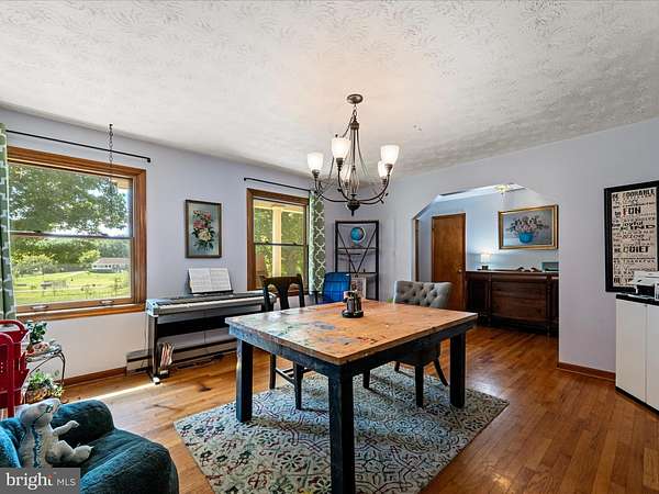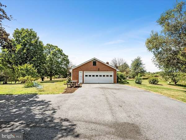 Set on 4.51 private acres in Summit Point, this all brick rancher offers space, flexibility, and peaceful country surroundings. Major updates including a new roof, new windows, and new HVAC in 2018 and 2019 provide confidence and long term value from day one. A welcoming front porch and expansive rear patio overlook open acreage, creating an ideal setting for outdoor living, entertaining, or simply enjoying the quiet. The property is subject to deed restrictions, yet still allows room to create your own outdoor lifestyle with gardening, recreation, or additional improvements within those guidelines. Inside, the home features 3 bedrooms and 3 full bathrooms with a comfortable, functional layout. Hardwood floors and a brick wood burning stove anchor the living room, while the kitchen flows seamlessly into the dining area for easy everyday living. Laundry is conveniently located on the main level. A full unfinished walk up basement offers generous storage and future expansion potential. Car enthusiasts or hobbyists will appreciate the oversized two-car attached side entry garage along with a separate two-car detached garage for additional vehicles, equipment, or workspace. An additional 3.1 acre lot located directly behind the property is also available for purchase, offering even more space and opportunity. 116 Rehoboth Lane delivers the privacy, open space, and versatility many buyers are seeking without sacrificing solid construction and meaningful updates.