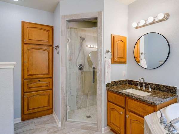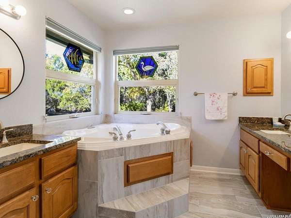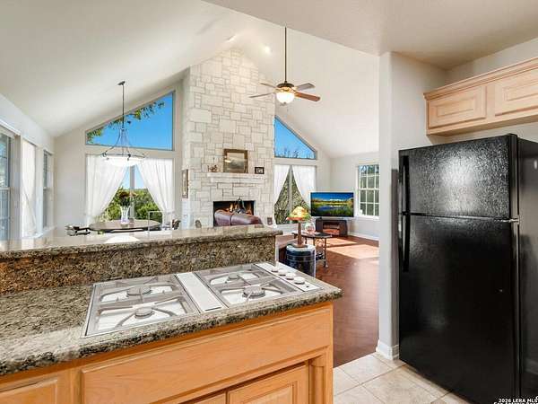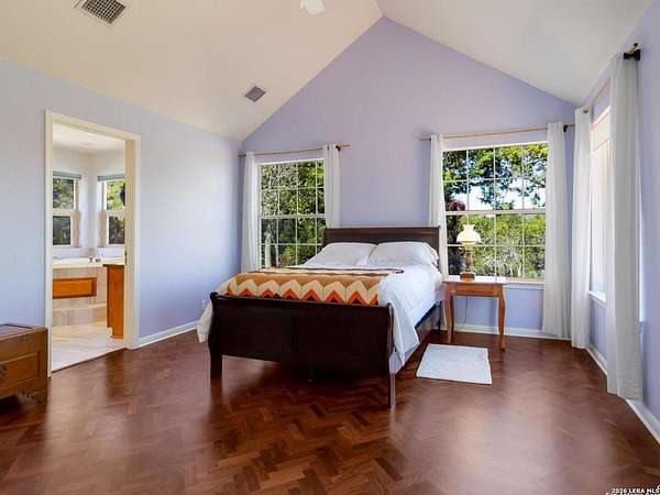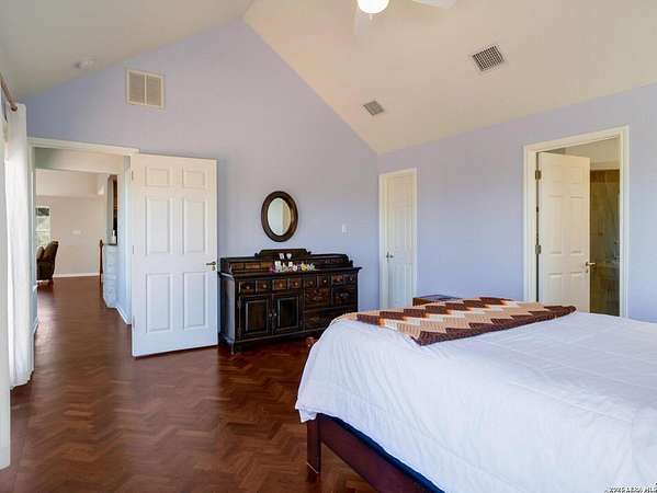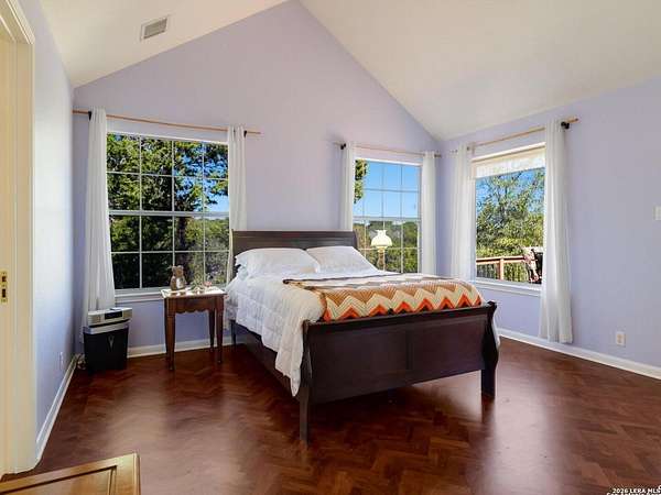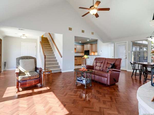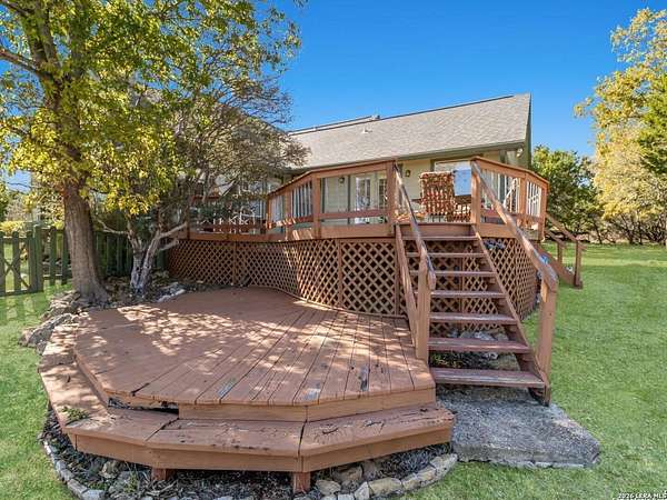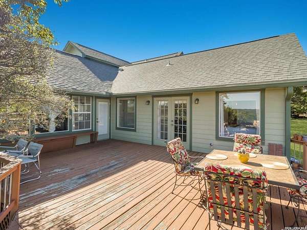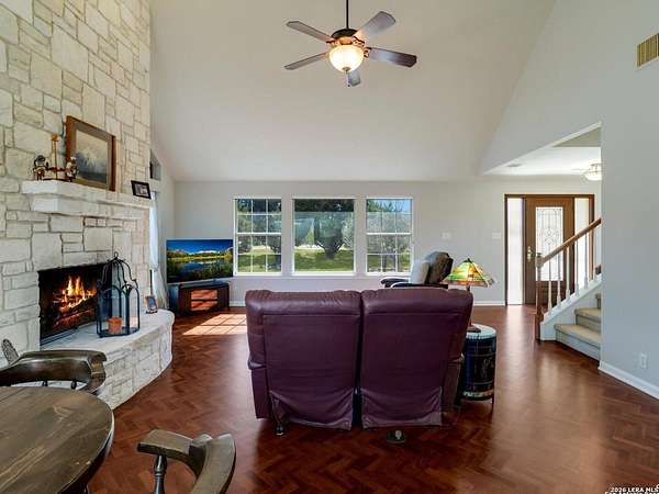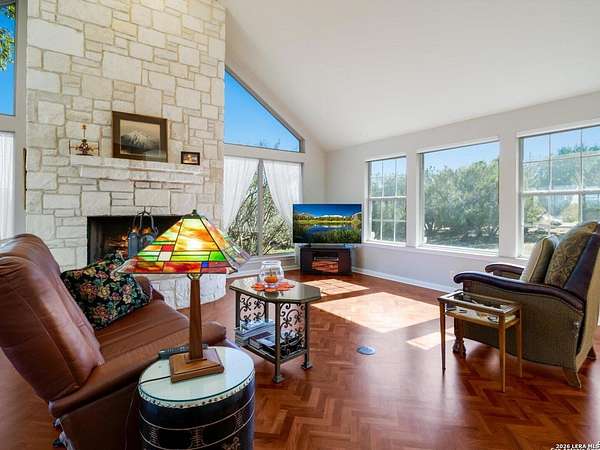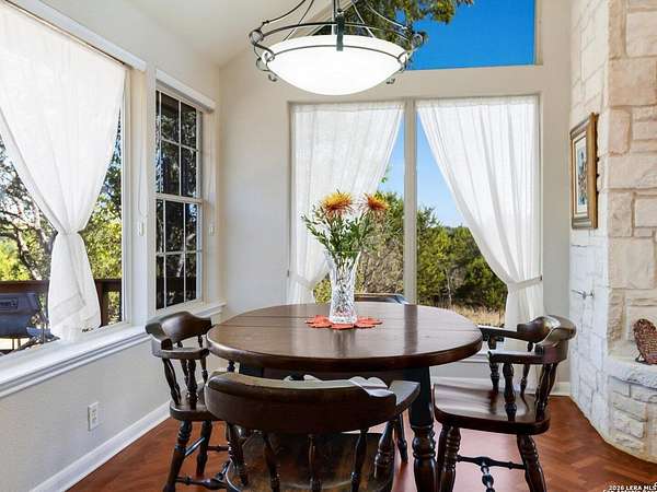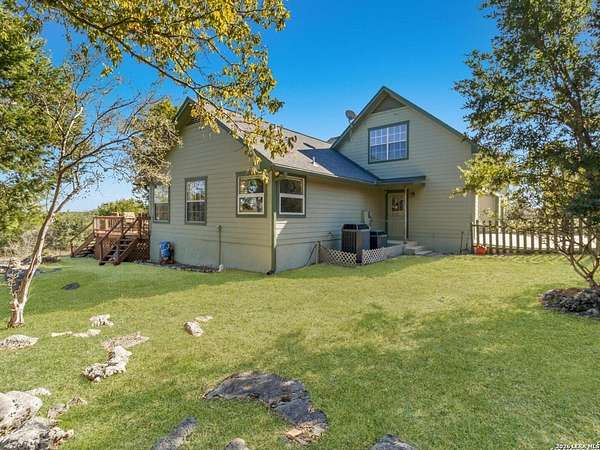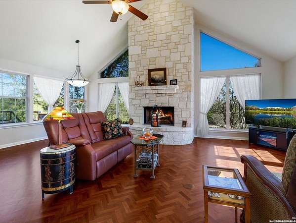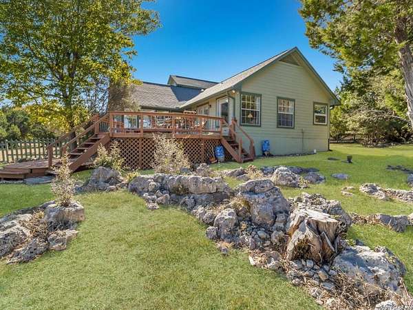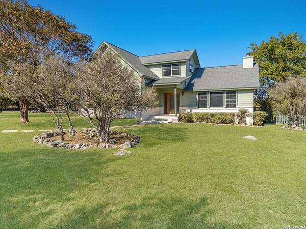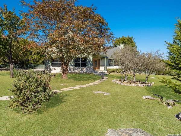 Escape to your own slice of Texas Hill Country paradise on four sprawling acres of natural beauty. This stunning three-bedroom, two-bathroom home seamlessly blends rustic charm with modern comfort across 2,100 square feet of thoughtfully designed living space. The heart of this home features an open floor plan adorned with rich mesquite wood floors that flow throughout the main living areas. Oversized windows frame breathtaking views of the surrounding landscape, while a soaring stone fireplace creates the perfect gathering spot for cozy evenings. The generous primary bedroom includes a walk-in closet so spacious you might consider charging it rent. Step outside to discover your personal orchard featuring mature fruit trees, including productive pear trees that provide seasonal bounty. The property offers direct access to the pristine Guadalupe River, perfect for fishing, kayaking, or simply enjoying peaceful waterfront moments. Adventure seekers will appreciate being just minutes from the fascinating Cave Without A Name, a natural wonder that draws visitors from across the region. Practical features include an oversized garage paired with an air-conditioned workshop, ideal for hobbies, storage, or that ambitious project you've been planning. The property benefits from highly regarded Boerne school district enrollment and convenient access to downtown Boerne's charming shops, restaurants, and community events. This rare combination of acreage, river access, and proximity to both natural attractions and town amenities creates an exceptional opportunity for those seeking the perfect balance of country living and modern convenience in one of Texas's most desirable locations.