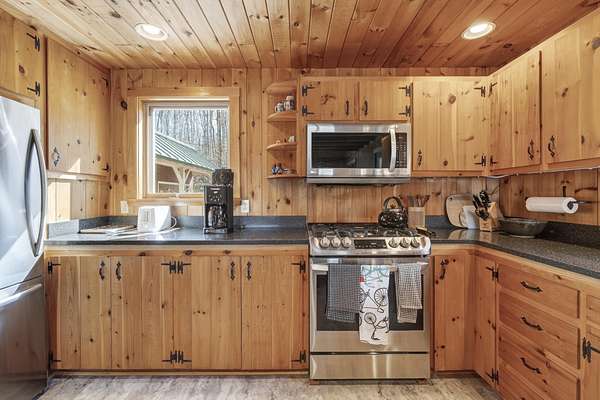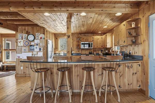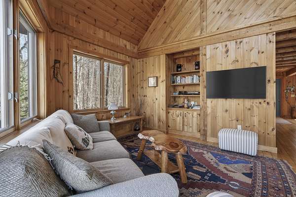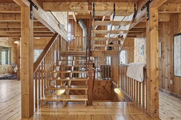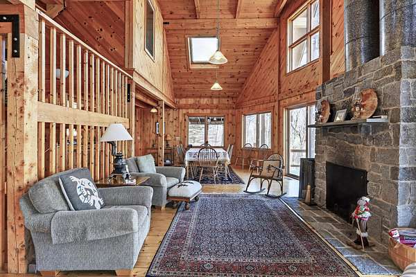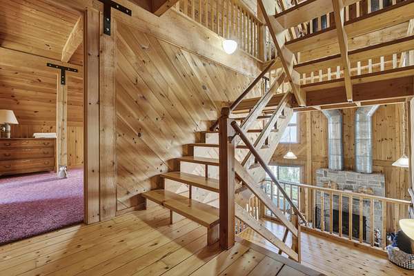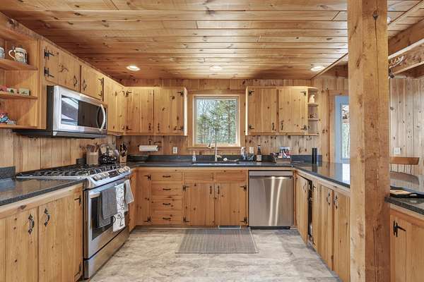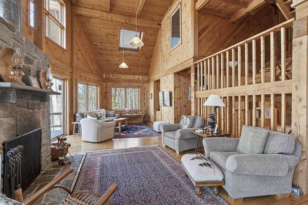 Experience the pinnacle of waterfront living on the shores of pristine South Pond in Greenwood. Perfectly positioned just minutes from both Mt. Abram and Sunday River Ski Resort, this exceptional property offers an unparalleled four-season lifestyle. Crafted in classic post & beam style, the home showcases timeless character, warm wood accents, and quality craftsmanship throughout. Thoughtfully designed to capture the beauty of its surroundings, the open-concept layout is anchored by a striking stone fireplace and a newly updated, chef-inspired kitchen. Expansive living and dining areas provide the perfect setting for both intimate gatherings and grand entertaining, all enhanced by abundant natural light. The main level offers effortless convenience with a well-appointed mudroom, a two-car attached garage, and a bedroom with a full bath--ideal for guests or flexible single-level living. Upstairs, two ensuite bedrooms create private retreats, each offering comfort and tranquility. The third-floor loft provides a serene escape--perfect for unwinding while taking in sweeping views over the water. The walkout lower level is equally impressive, featuring a fourth bedroom, full bath, and an expansive family room designed for relaxation and recreation. Designed with ease in mind, the property offers a low-maintenance lifestyle, allowing you to enjoy the water and surrounding natural beauty. With an extraordinary 290 feet of private frontage, the setting provides rare seclusion and breathtaking waterfront vistas. Offered fully furnished, this property is a distinguished combination of craftsmanship, comfort, and natural beauty.