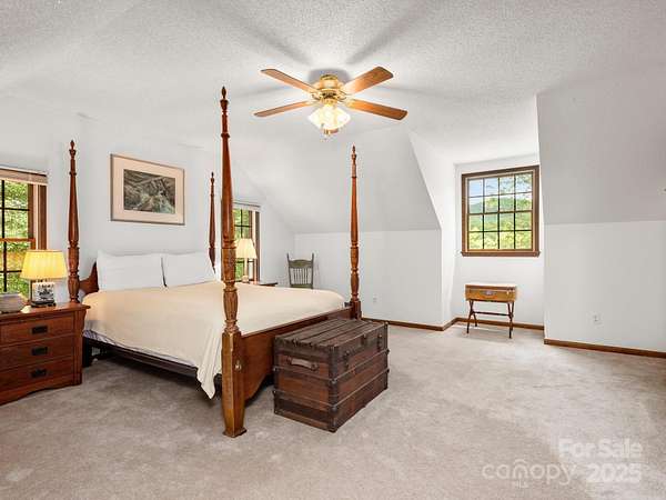 Ideally located down a picturesque country road in Candler, this stunning estate home sits perched upon its gentle acreage. Relax while breathing in the crisp mountain air. Enjoy views from your pick of covered porches. Mature plantings, specimen trees, seasonal blooms, and multiple fresh water springs will surely delight! Perhaps you will choose to catch dinner in stocked pond? You will love the large detached garage, barn, and multiple storage sheds. Inside find extra-large rooms with expansive windows, hand crafted moldings, and gleaming hardwood floors. The robust wood stove and custom built, energy efficient, Isokern fireplace are sure to keep you cozy and warm when the temperatures drop. Upstairs, there is a 546 Sq foot flex room/studio space with an outside entrance, and the daylight walk-out basement has an expansive workshop and office space. There is even a walk-in vault for valuables, whether those be collectibles or provisions. What a rare offering of a legacy property!