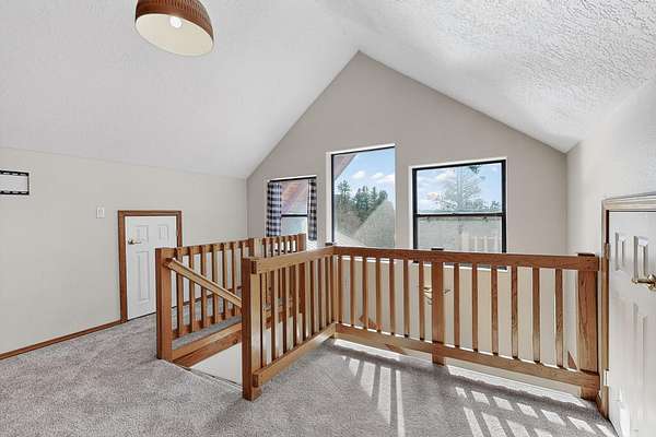 - Beamed Ceilings, Cable Tv, Cathedral Ceilings, Ceiling Fans, Dual Sinks, Entrance Foyer, Great Room, High Ceilings, High Speed Internet, Living Dining Room, Loft, Main Level Primary, Pantry, Separate Shower, Shower Only, Walk In Closets