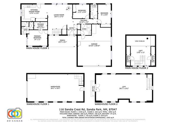 Welcome to this rare find at the base of the Sandia Mountains, located about a mile up the scenic Sandia Crest Rd. Listing includes three adjacent lots (116, 114, and 112 Sandia Crest Rd.), totaling 1.9 acres. The 1,700 sq ft main home on lot 116 has three bedrooms, two bathrooms, plus an upper-story loft and an oversized, insulated two-car garage. On lot 114, the custom, insulated, heated and cooled workshop is a hobbyist's dream, with its own 240 volt, 150 amp electrical service. The downstairs shop space is 800 sq ft, and the upstairs studio is 600 sq ft. Recent upgrades include a new metal roof, new high-efficiency heating system, and new carpet in the loft. Just 15 minutes outside of Albuquerque, yet private and close to nature, the only thing this mountain home is missing is you!
