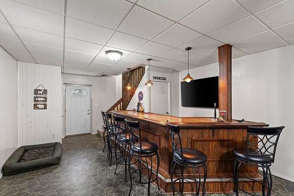 Est $1,456/moWell-maintained 3 bedroom, 3 bath home on 2.14 acres offering space, privacy, and room to entertain. Inside you'll find a large open living room filled with natural light and an updated kitchen with modern cabinetry, tile backsplash, and ample counter space. The primary suite includes a private bath with double vanity. Enjoy relaxing on the covered front porch with porch swing, perfect for quiet mornings or evening sunsets. The finished lower level features a custom bar and entertainment area, ideal for hosting friends and family. A great combination of comfortable living space and acreage to enjoy the outdoors.