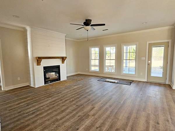~ POPULAR BRITTANY LAKES HOME SITTING ON 1.50 ACRES ~ NEW CONSTRUCTION IN LEE COUNTY ~ PRIVACY GALORE ~ Craftsman style home with tons of EXTRAS! This home features an amazing OPEN FLOOR PLAN with a split bedroom design! This home features 2035 sq ft of living space, 4 bedrooms and 2 baths! There is an inviting foyer which opens up to the large family room with a gas fireplace, triple windows for loads of natural lighting and a door for covered porch access! The kitchen is open to the family room, has a large island with seating, tile backsplash, custom cabinets, pantry, GRANITE COUNTERTOPS, stainless appliances and an eat-in dining space! Formal Dining Room for all of your special occasions! The master bedroom is very nice--- a double vanity, a freestanding tub, a separate tiled and glass shower and a walk-in closet! Additional upgrades include, crown molding, granite countertops throughout, upgraded lighting and plumbing fixtures, covered front and back porches, a double garage, 30-year architectural shingles, all low maintenance hardi plank exterior, double pane windows, extra insulation for super energy efficiency! Landscaping package is also included (some sod in front yard w/ basic shrubs)! Wonderful location and beautiful setting with loads of privacy!