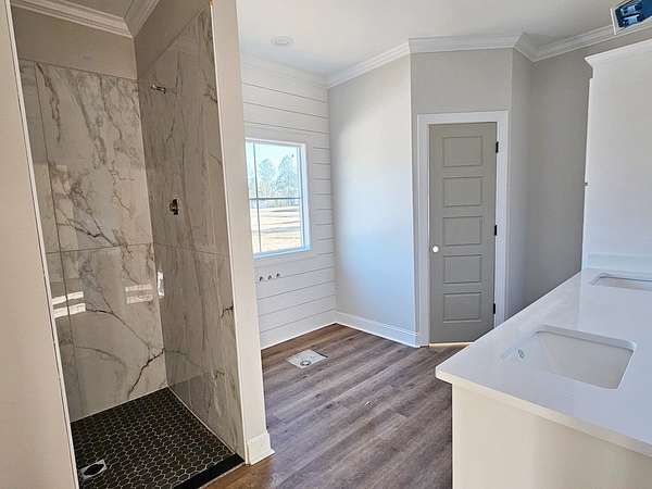 - Crown Moulding, Kitchen Island, Lighting Recessed, Newly Painted, Open Floor Plan, Pantry, Separate Shower Primary, Specialty Ceilings, Split Floor Plan, Walk-In Closets