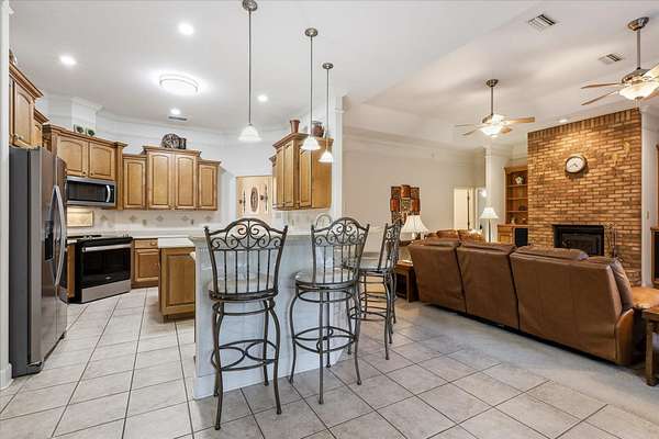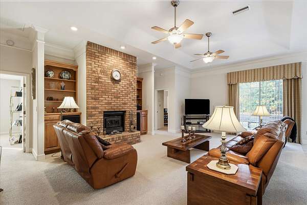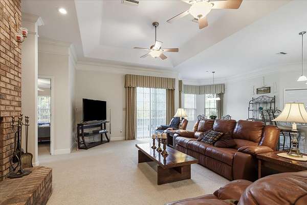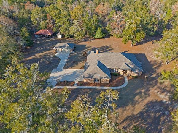Welcome to this beautifully maintained 3,076 sq ft home built in 2003, set on five private acres in Crawfordville. Featuring soaring ceilings and multiple living areas, the home offers a formal living room, expansive dining room, and a family room with a wood-burning fireplace-ideal for both everyday living and entertaining. The spacious primary suite includes two walk-in closets and a private storage closet. Two bedrooms share a Jack-and-Jill bath, while a fourth bedroom is conveniently located near a half bath, perfect for guests or a home office. The eat-in kitchen and large laundry room with sink and ample cabinetry add functionality and comfort. Outdoor enjoyment abounds with a tall pavilion and endless possibilities across the acreage. Additional highlights include an attached 3-car garage, a detached 3-car garage, and multiple storage rooms, including a walk-in garage storage room with a half bath. Located in a quiet, well-kept neighborhood, this property offers exceptional space, privacy, and versatility.