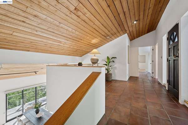 Timeless contemporary design, sweeping views, and exceptional indoor/outdoor living are all here in this sophisticated 4+BD/2++BA Sleepy Hollow estate. Set in coveted Bear Ridge, this contemporary 4451 SQFT home offers serenity, privacy and exquisite vistas on 1.5 acres of oak woodlands. The home opens dramatically to soaring beamed ceilings, sunny skylights, and floor-to-ceiling windows and glass doors, making beautiful Briones and Mt. Diablo views its ever-present backdrop. In the elegant living and dining areas, entertain and relax with family and friends or open the doors to the expansive wraparound deck for al fresco dinners and conversation. The adjoining eat-in kitchen and great room open seamlessly to the deck. The secluded primary suite enjoys a walk-in closet, huge ensuite bath, deck access, and private patio. Upstairs, find three bright bedrooms with full bath and powder room; downstairs are two large flexible rooms with exterior doors, ready for your needs as a playroom, studio, office, or family room. The lower level also provides access to the back yard, another powder room, and an ample bonus storage space. Your commute is easy with a two-car garage and nearby BART and HWY 24. Sought-after K-12 schools, shopping, dining, and entertainment are just down the hill.