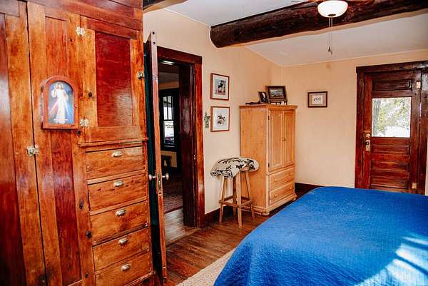 Step back in time with this historical property nestled in the heart of Catron County, NM. Just 18 miles southwest of Datil, this charming log and adobe home offers a tantalizing glimpse into the early 1900s. Spread across 119 acres of fenced pastures, this rustic retreat is perfect for those dreaming of their own slice of the wild west. The cozy 1,100 square-foot home features two bedrooms and two bathrooms, exuding warmth and character with its antique cabinets and floors made from timber sourced from one of the area's first sawmills. The property doesn't stop impressing there. The original adobe and native rock garage still stands strong, while an adjacent structure houses a root cellar ideal for storing fresh produce. The estate is dotted with native log buildings, including a quaint guest house complete with a bed and wood stove, offering a cozy haven for family and friends. Horse enthusiasts will find everything they need here, with a large shop complete with cement flooring, wood corrals with covered stalls, a round pen, and a full arena for training and riding. The practicality is matched by its natural beauty, with three productive wells providing water for the home, livestock, and the various wildlife that frequent the area, including elk and antelope. Located in Game Unit 15, the property also comes with a unique perk-a yearly elk tag for the owner. Whether you're an avid hunter or someone who simply appreciates the presence of wildlife, this historical abode offers a perfect blend of history, functionality, and natural beauty. Don't miss the chance to own this unique piece of the wild west!