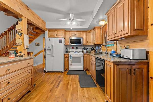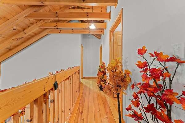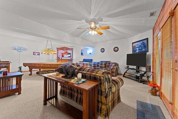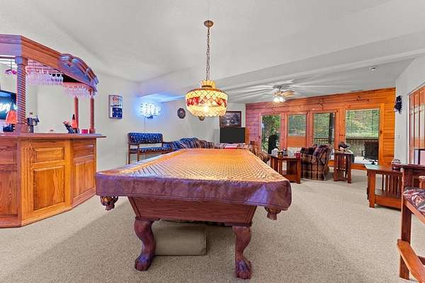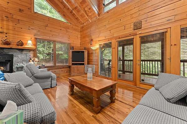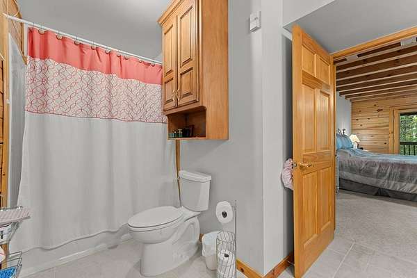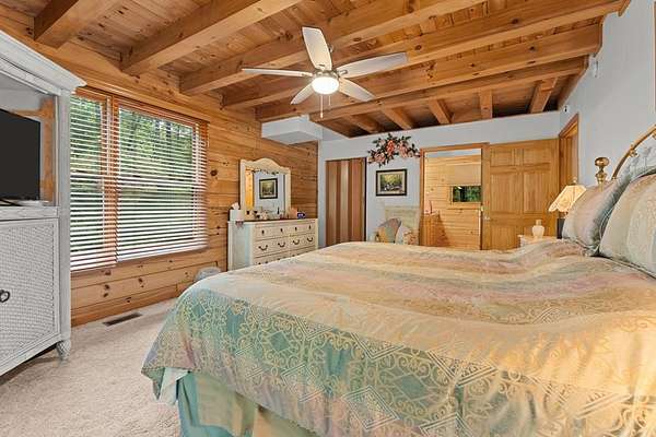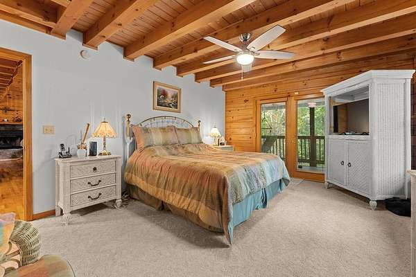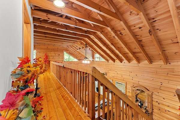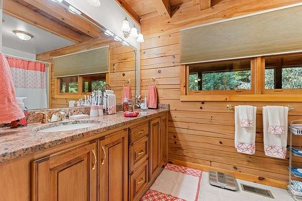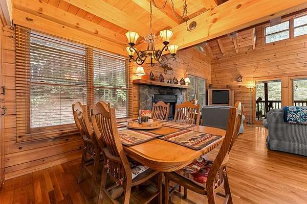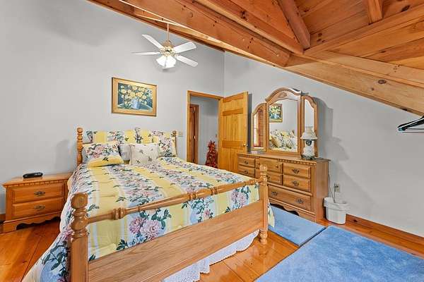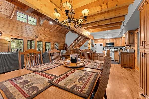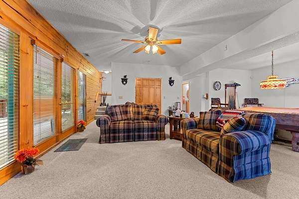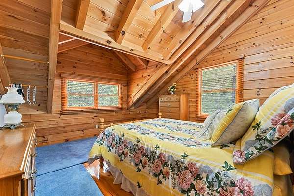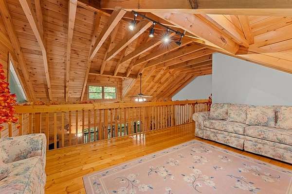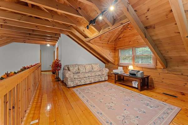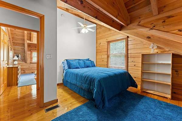 Beautiful furnished true D log cabin in excellent condition on 2.59 private acres, in an established subdivision of nice homes. This end of the road, 5-bed/3.5 bath custom home awaits its new owner. With front & back porches it offers plenty of places to relax & enjoy nature. Inside, the main floor has an open layout with hardwood floors. The living room features a vaulted wood-beamed ceiling & stone WB fireplace & opens to a large porch. The kitchen has custom cabinets, granite counters & a large breakfast bar. The main-level primary BR with an en-suite bath offers easy living. Upstairs, you'll find two bedrooms, a full bath, & a nice loft overlooking the living room. The lower level has a large family room with a pool table & bar that leads out to an oversized deck, that is great for entertaining. There's also 2 more bedrooms, full bath & laundry. Outside, a small pond with a old gazebo awaits you, that with a little TLC, it could be a wonderful spot to gather. The property has plenty of space for outdoor activities and is easily accessible, w/entry on both levels & no steep mountain roads to climb. It makes a perfect full-time residence, a relaxing getaway, or a vac. rental.