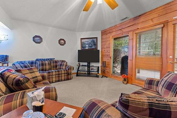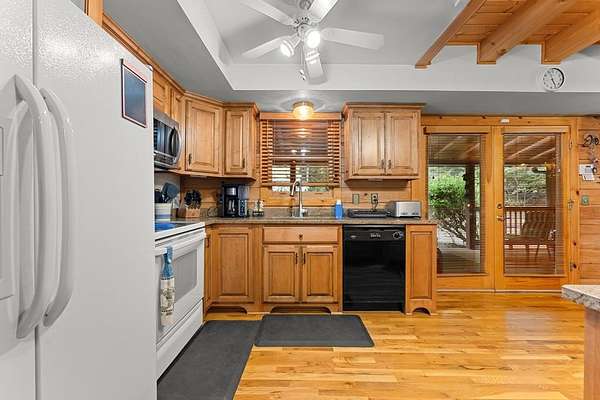 - Breakfast Bar, Cathedral/Vaulted Ceiling, Ceiling Fan(s), Kitchen/Dining Room, Main Level Living, Open Floorplan, Primary On Main Level, Primary W/Ensuite, Walk-In Closet(s)