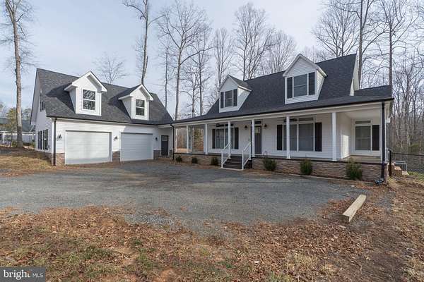 This stunning home is truly as close to new as it gets. Tucked away on over five peaceful acres at the end of a quiet cul-de-sac shared by just two other homes, it offers exceptional privacy, tranquility, and quality craftsmanship throughout. A lengthy private driveway, welcoming wraparound porch and custom details set the tone as you step inside. The pristine eat-in kitchen overlooks serene natural surroundings, creating a perfect space for everyday living or entertaining. The main level features the spacious primary bedroom with abundant closet space, an extra large walk-in shower, and a luxurious soaking tub-your own private sanctuary. Upstairs, two generously sized bedrooms and a full bathroom provide comfortable accommodations for family or guests. The fully finished lower level, complete with a private entrance and separate driveway, offers remarkable flexibility. It includes a large entertaining area, bedroom, full kitchenette, a full bathroom, a half bath, and ample storage-ideal for guests, multi-generational living, or extended stays. Adding even more value, the detached oversized garage features an upper level with rough-ins for a full bathroom, plumbing for a washer and dryer, and a full kitchenette-ready to be transformed into an in-law suite, studio apartment, workshop, or creative space. A beautiful new fence has just been installed, enhancing both privacy and appeal. With endless possibilities and a rare combination of space, privacy, and versatility, this exceptional property is the one you've been waiting for. 10 minutes to I-95 Express Lanes, 25 min to Quantico, 40 min to Springfield