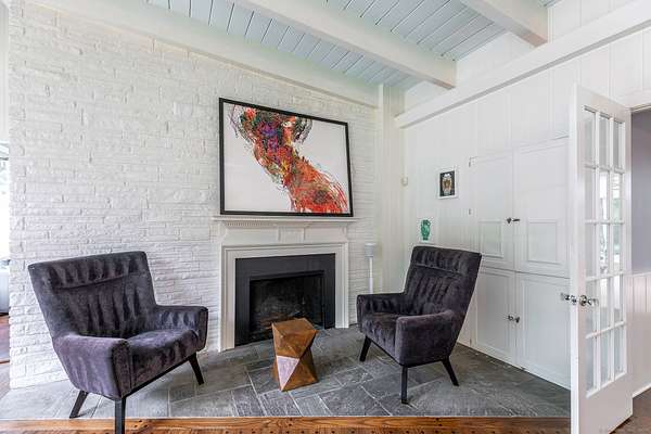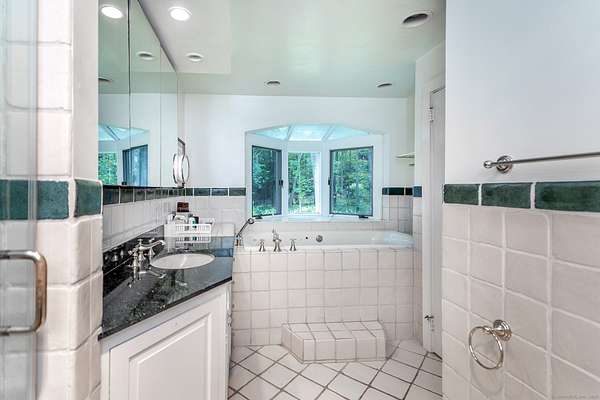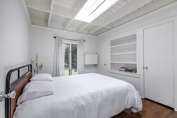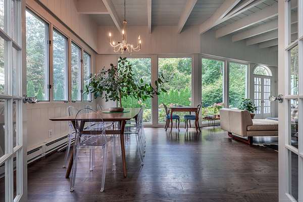 Mid-Century single-level in a convenient Roxbury location. Cool mad-men vibe with floor to ceiling windows, exposed beams, vaulted ceilings, stone and wood floors, and wood paneling. Throughout the house the many windows pour natural light in and give fabulous views over the private and manicured grounds. The home has multiple versatile rooms giving a choice of layout to fit your needs. The formal living room with fireplace includes the dining space and overlooks the granite patio and Scott inground gunite pool. The updated kitchen with stainless steel appliances boasts a stone floor and charming built-in cupboard. The nicely sized family room with fireplace is set near the rear of the house and can also be used as a quiet study or office. The current breakfast room off the kitchen with wood stove and half bath can double as a sitting room or the formal dining room. There is a spacious wood paneled conservatory style sunroom. There are two ensuite bedrooms both with French doors that lead to the lush gardens and grounds. The third bedroom completes the home and has charming built-ins and skylight. The property includes a detached two bay garage with studio/gym and a pool cabana with outdoor shower. House is wired with Ubiquity WiFi. Come take a look!