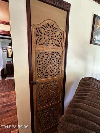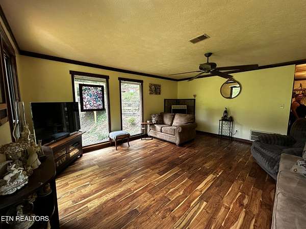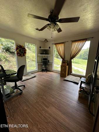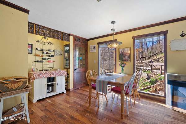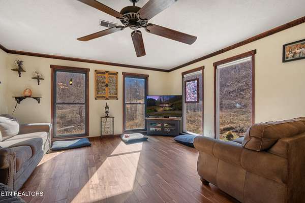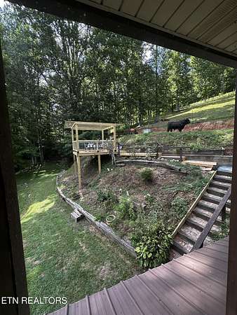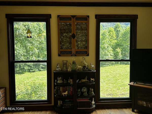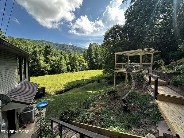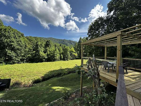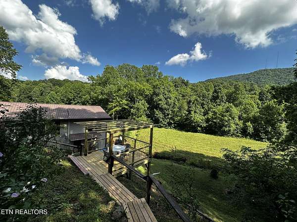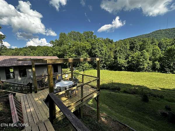 Discover your personal piece of paradise tucked away in a serene natural setting. This beautifully crafted 3-bedroom, 2-bathroom home offers the perfect blend of luxury and tranquility, featuring a newly installed Aqua Clear whole-home UV filtration and softening system. The thoughtful layout includes a spacious lower-level guest suite for ultimate privacy. Upstairs, the primary suite serves as a true retreat with a spa-like jacuzzi tub. The heart of the home is the expansive living room, where floor-to-ceiling windows frame stunning panoramic views. Enjoy gatherings in the cozy kitchen and open dining area, or step outside to the welcoming front porch and back deck overlooking a peaceful stream. This property is ready for your animals with a fenced pasture and a nearly new 24x32 barn. Bonus: Expand your estate by purchasing the adjacent 9 acres at 1013 Cloud Creek, which includes a tiny home and additional creek frontage.
