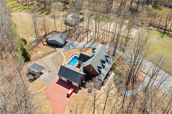 +/- 5.7 Acre estate offering privacy, horse amenities, and a custom craftsmanship home. Featuring a 4-stall barn with 2 attached run-outs, a wash rack, storage space, regularly maintained pastures and a 60'x100' outdoor fenced-in arena with river sand. The second barn houses 5 smaller stalls, allowing the opportunity to leave as-is or convert into larger, full size stalls. The 5,200+ sq foot custom home features high-quality finishes, plantation shutters, crown molding, and hardwoods throughout the main level. The primary suite on the main floor features a separate tub and shower, a double vanity, and a large walk-in closet. Other features on the main floor include a large eat-in kitchen with stainless steel appliances, a convenient mud/laundry room off the 3-car garage, a large sun room overlooking the pool and barn, a separate formal dining room, and a large custom home office. Upstairs features the secondary bedrooms with a shared full bathroom and multiple access points to attic storage. The finished terrace level includes a fully finished bathroom, a theater room, a wet bar, a fireplace, a whole-house generator, a pool table, and private exterior access to the back yard/ RV parking. Above the 3-car garage is an unfinished bonus space that could be finished for an additional bedroom/office/loft. In addition to the equestrian facilities, the exterior features a storage shed, a large 2-car workshop with 220 V (featuring some equipment up for negotiation, including the tractor and zero-turn mower), a large concrete parking pad with electric hook-up perfect for an RV or horse trailer with living quarters, accessible through a separate driveway. This property is conveniently located about a mile away from Cherokee Feed & Seed for those who are ready to bring the horses home! And about 5 minutes from everyday conveniences like Publix, shopping, and restaurants.