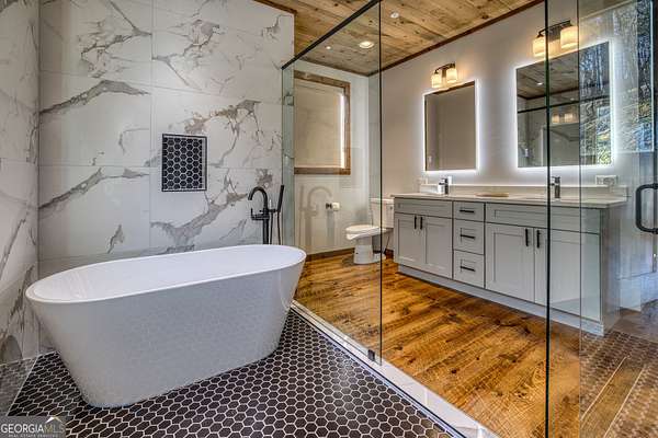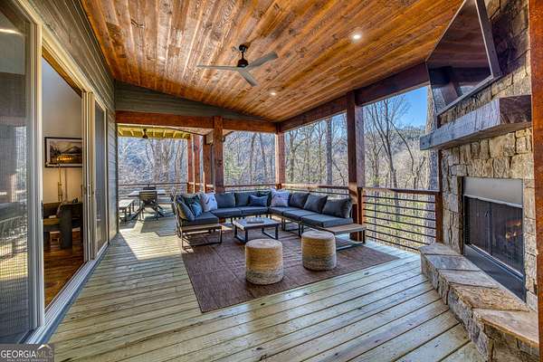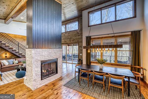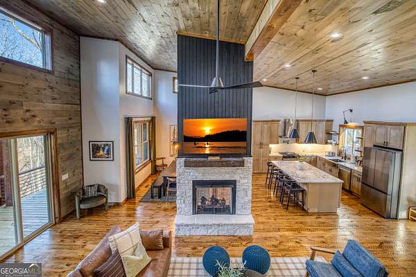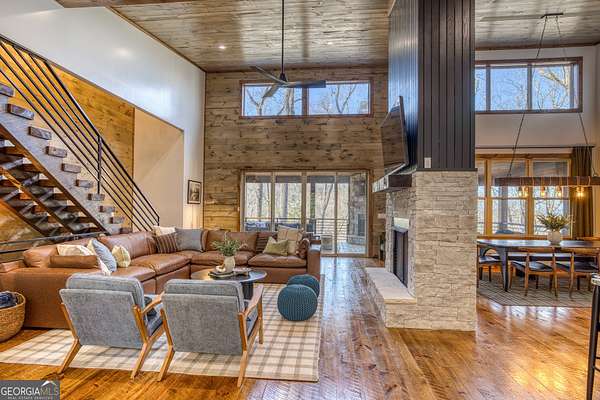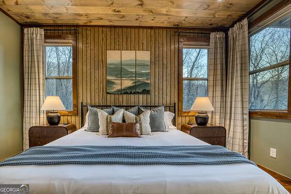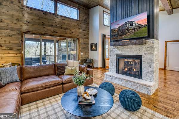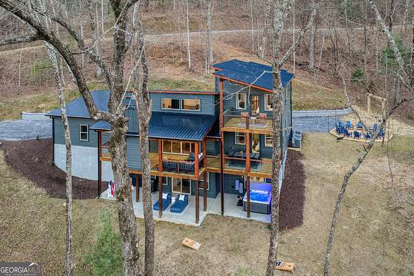 Stunning mountain luxury meets modern cabin nestled in the scenic Blue Ridge Mountains of North Georgia. This beautifully designed property was professionally designed and furnished. The sellers invested nearly $150K to make this the perfect blend of upscale comfort and natural serenity, which in turn made the property an exceptional opportunity for a primary residence, second home, or investment property. Surrounded by peaceful, long-range mountain views, the home features spacious, thoughtfully designed interiors with stylish finishes throughout. The open-concept living areas provide an inviting space for gathering, while the fully equipped kitchen is ideal for entertaining. Multiple ensuite bedrooms offer comfort and privacy, creating a true retreat for owners and guests alike. Designed for both relaxation and recreation, this home is packed with sought-after amenities. Enjoy three gas log fireplaces, a dedicated game room featuring a pool table, shuffleboard, and game table, as well as a variety of indoor toys and games. Step outside to experience exceptional outdoor living, complete with a private hot tub, custom-built swing set, outdoor fire pit, and a full lineup of games including cornhole, ring toss, and giant Connect 4-perfect for entertaining all ages. Located just a short drive from downtown Blue Ridge, this property offers convenient access to hiking trails, the Blue Ridge Scenic Railway, local boutiques, and popular dining destinations. Whether you're seeking a peaceful retreat or an adventure-filled lifestyle, this home delivers the best of both worlds. This is a rare opportunity to own a luxurious mountain escape with strong appeal for personal use or short-term rental potential.