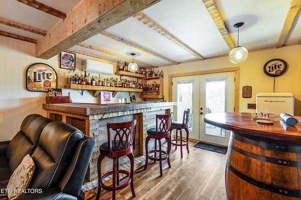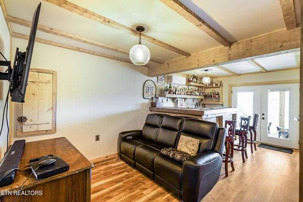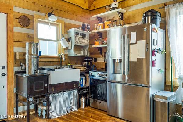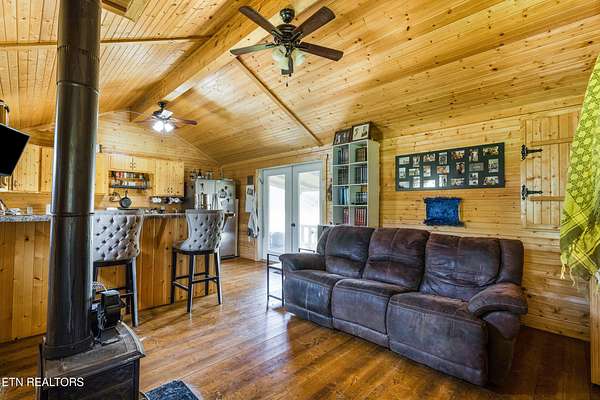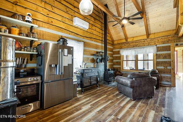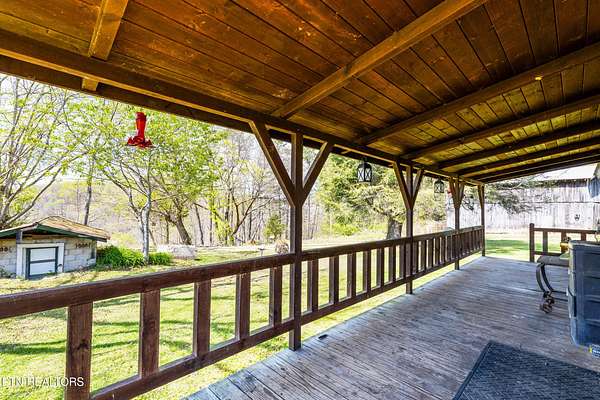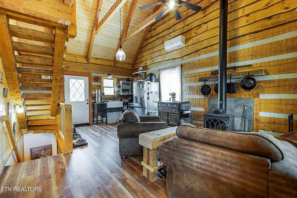 A rare opportunity to own a true East Tennessee legacy estate--over 80 acres of thoughtfully improved land where luxury living and self-sufficient homesteading come together in perfect balance. This one-of-a-kind property offers unmatched versatility, natural beauty, and craftsmanship that is nearly impossible to replicate. At the heart of the estate sits a ~1,600 sq ft custom main cabin, where every detail reflects intentional design and timeless quality. Hand-hewn wood elements are showcased throughout, with each piece carefully crafted and touched by hand, creating a warm and authentic atmosphere. Built using materials sourced in the USA, the home blends rustic character with modern comfort. The main level offers inviting living spaces and a spacious sunroom with floor-to-ceiling windows that frame breathtaking views of the Cumberland Gap. Upstairs, the private primary suite offers a peaceful escape with its own ensuite bath. The finished lower level is designed for both entertaining and flexibility, complete with a full wet bar, guest bedroom, and a spacious area ideal for hosting or extended stays. Step outside to an expansive patio and unwind in your private wellness retreat, featuring a 6-person Caldera spa, hot springs-style hot tub, and cold plunge--perfect for year-round relaxation. In addition to the main residence, a ~600 sq ft guest cabin provides incredible opportunity for multi-generational living, private guest accommodations, or potential short-term rental use, with furnishings negotiable for a turnkey experience. The property continues to impress with multiple additional buildings, offering flexible space for storage, classroom or workshop use, creative studios, or future living quarters. Beyond a private estate, the scale, layout, and natural beauty of the land present a rare opportunity for a boutique event venue, private retreat, or destination-style gathering space. With expansive open areas, scenic backdrops, and multiple structures for hosting and accommodations, the property is well-suited for weddings, events, or curated guest experiences. Step outside and experience the true essence of homesteading. The land is rich with established fruit and nut trees, including fig, elderberry, cherry, almond, plum, nectarine, peach, persimmon, apple, pear, and pawpaw. Berry patches of blueberries, raspberries, and blackberries thrive alongside muscadine and Concord grapevines. Established garden areas and a traditional root cellar support a sustainable lifestyle. Water resources are abundant, with two wells and a natural spring on the property. Scenic waterfalls and mature trees enhance the landscape, creating a peaceful, private setting filled with natural beauty and abundant wildlife. For recreation and functionality, the estate includes a private on-site range, making it ideal for training, hobby use, or unique business opportunities. A barn and additional storage structures further support agricultural, recreational, or operational needs. An abundance of native wildlife roams the property, offering a true connection to nature--frequent sightings of deer, turkey, and a vibrant variety of birds create a private, ever-changing landscape filled with natural beauty and sound. Whether you envision a private family retreat, working homestead, income-producing property, or a multi-use estate with event or short-term rental potential, the possibilities here are truly expansive. Properties of this scale, quality, and versatility are rarely available. This is more than a home--it's a legacy property designed to be lived in, shared, and passed down for generations. Extensive feature list available--details beyond what MLS can capture.