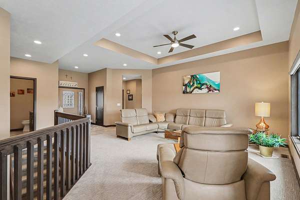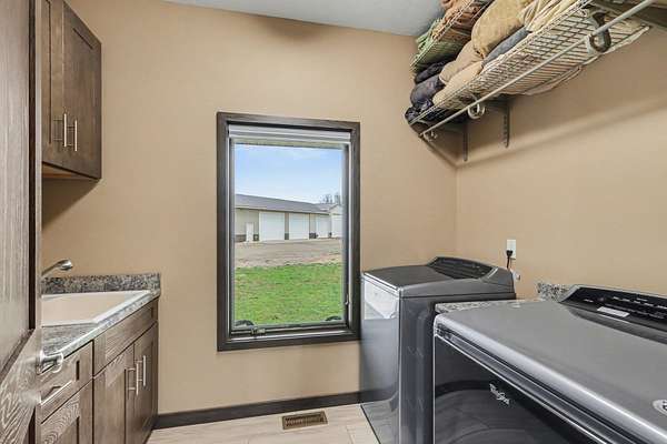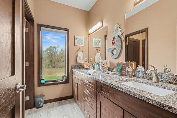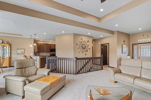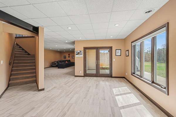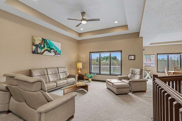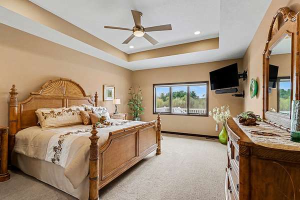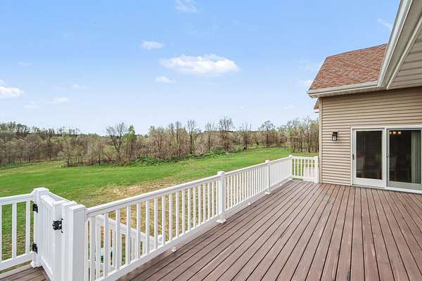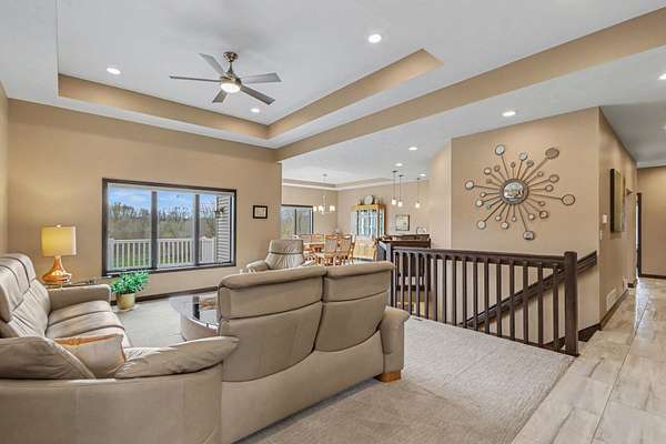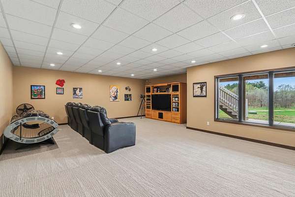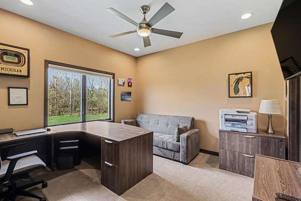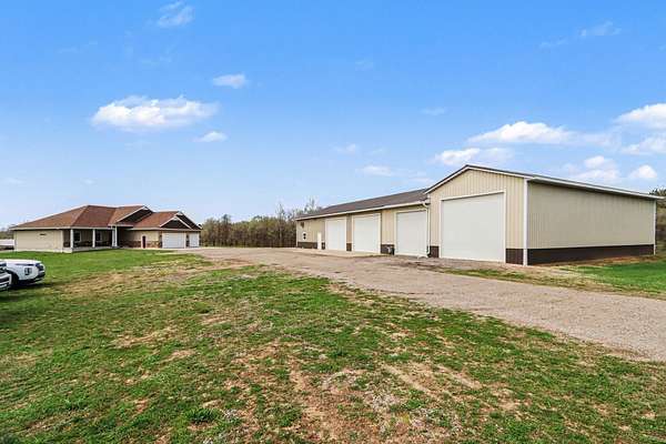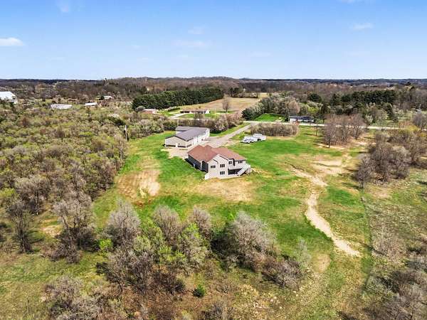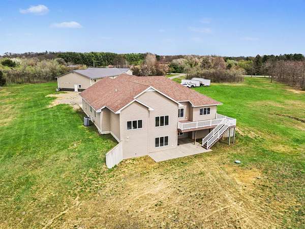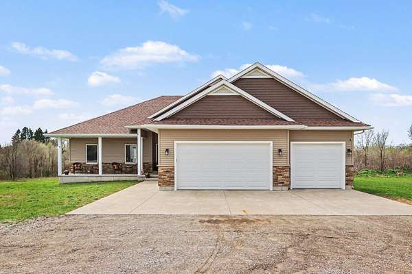 Luxury meets space and privacy on 20 stunning acres in Watervliet! This 4,950 sqft Walkout Ranch offers 3 bedrooms, 3.5 baths, and an oversized 3-car attached garage. The beautiful kitchen sits at the center of the home with a walk-in pantry, snack bar, and seamless flow to the dining area and expansive deck overlooking the property. The elegant primary suite features a dual-vanity bath with heated floors and a large walk-in closet, while the main floor also includes laundry, a spacious living area, and a dedicated office. The finished walkout level adds a rec room, workout space, and full bath. Security cameras include backup storage and activity alerts to phone app. A 5,000 sqft pole barn with 2,880 sqft of heated and AC space includes a full apartment with kitchen, bath, and laundry-perfect for guests or additional living space. Great walking trails on the property and nearby access to the snowmobile trail system and Sister Lakes area-10 lakes within 5 miles. Endless possibilities!
