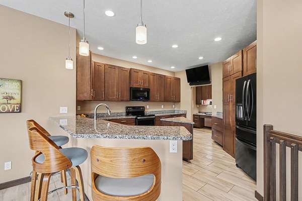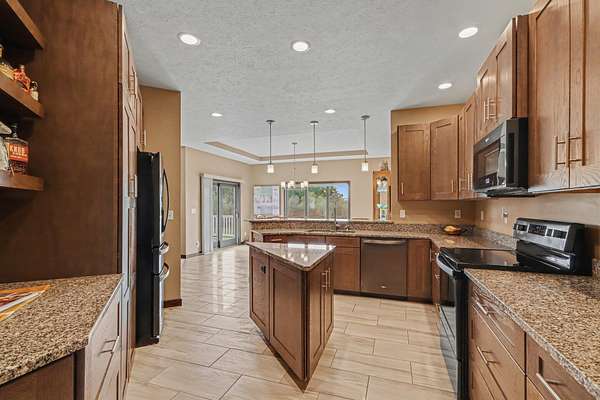 - Ceiling Fan(s), Center Island, Eat-In Kitchen, Garage Door Opener, Pantry, Wet Bar