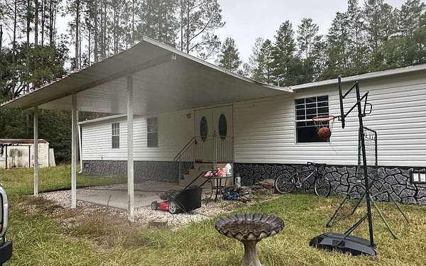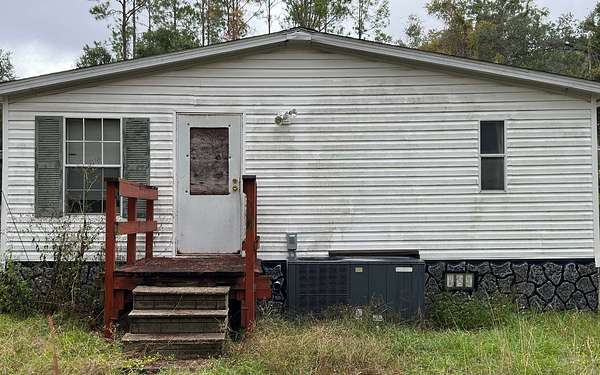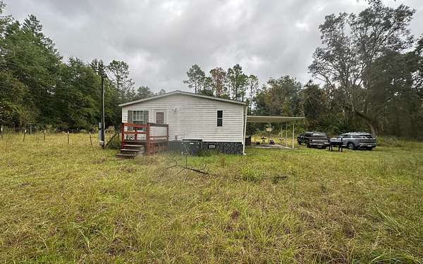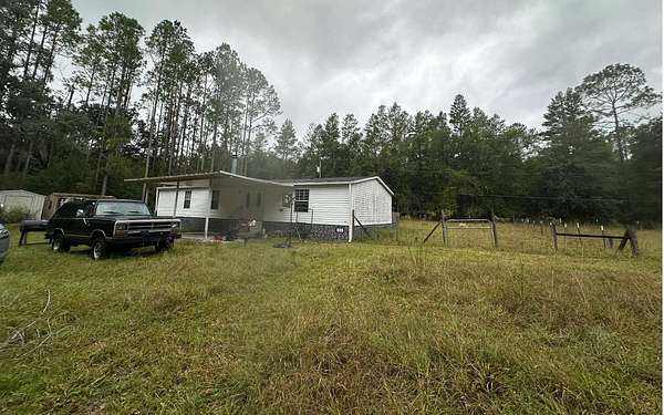 NEW IMPROVED PRICE! If you're looking for acreage in a desirable location with NO deed restrictions yet close to town, you'll want to come check out this 5.01 acres. Zoned A-1, the property is partially cleared, fenced and cross-fenced, offering plenty of room for animals, gardening, or your own small farm. The 3/2, 1997 DW manufactured home is in need of a full rehab, including floor repairs, and completion of the second bathroom which has been gutted. Attributes include an attached front covered carport on a concrete slab, partial gutters, a spacious screened and covered back deck that spans the full length of the home. There is also two storage sheds, a private well with water softener, septic system, and an additional small concrete slab for another storage unit or whatever you like. If you're looking for a rental investment and are willing to fix up what's already here, this could be your opportunity. Cash only as the home is not financeable in it's current condition.