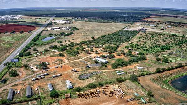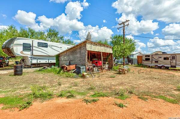 Prime commercial or investment opportunity located just off IH-35 S and Hwy 85 with UNRESTRICTED land use. Previously operated as a mobile home and RV park, this property offers strong income and expansion potential. Approximately four acres are dedicated to the park with 22 mobile home spots and 50 dedicated RV spots. The RV Park almost completed with water lines installed; electrical boxes are still needed for full operation. Two septic systems in place. The property has been rented as a truck yard for $2,000 per month, with excellent potential to generate additional income by renting additional space. A double-wide modular home conveys with the sale. Additional improvements include seven sheds, a water well (needs repair), livestock pens, a round pen, and a covered 60x50 concrete slab previously used for eighteen-wheeler maintenance. Utilities available include natural gas service, Medina Electric, AEP power, city water and sewer, and phone and fiber internet service through Valley Telephone (VTX). Unrestricted use provides endless possibilities for commercial, industrial, residential, or mixed-use development. Excellent highway access and visibility make this property ideal for investors, developers, or owner-operators seeking a versatile property with existing infrastructure.