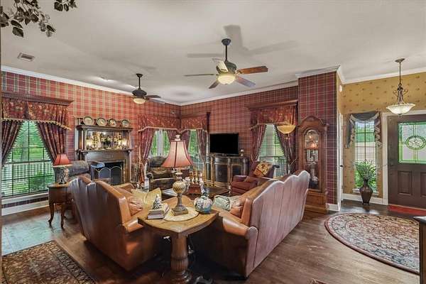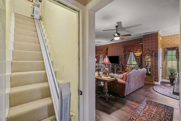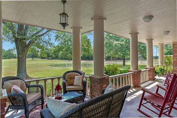 Discover the perfect blend of functionality and charm on this 20+ acre property offering a mix of cleared pasture and serene wooded areas. With two ponds, a 30x50 metal barn, 16x12 feed barn, a separate craft barn, corral with loafing shed, large chicken coop and an 8x28 storm shelter, the land is ready for livestock, hobbies, or expansion. The thoughtfully designed home features a spacious wrap-around porch and a quality build with 2in x 6in exterior walls, post tension 18in slab on piers, and a warm, cottage style feel. Inside this lovely home, the primary suite is conveniently located downstairs and includes a sunroom or exercise room for added flexibility. A separate downstairs apartment offers a living area, kitchenette, ensuite bath that is handicap accessible, and a private entrance ideal for multi generational living or guests. Upstairs you'll find another living space, bedroom, full bath, and a stair lift for accessibility. The kitchen has SS appliances, granite counters, island and the butler's pantry make everyday living comfortable and efficient.This peaceful property offers endless potential, including space for additional homes perfect for a family compound or small scale retreat. Priced under appraisal value!