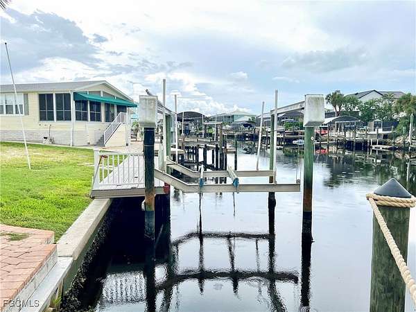 Don't miss your chance to own one of the last available wide canal-front lots in highly desirable Bayside Estates, a vibrant 55+ boating community just minutes from the Gulf of Mexico and pristine sandy beaches. This premier lot sits near the end of a deep, saltwater canal, offering direct access to open waters-ideal for serious boaters and sailors alike. With one of the widest canals in the community, this lot is perfectly suited for accommodating larger boats or sailboats with ease. Lot size 50x87' with composite dock and boat lift. Whether you're looking to build your dream coastal retreat or invest in a piece of paradise, this rare opportunity combines prime waterfront living with all the amenities of an active, welcoming neighborhood. Live the ultimate Florida lifestyle-sun, sea, and sailing-right from your backyard. Buyers in Bayside Estates pay a one-time $2,600 resale capital contribution fee. Ideally located near beautiful FMB and Sanibel beaches, great dining, and a variety of local attractions. Don't miss out-this is the ultimate boating life opportunity!