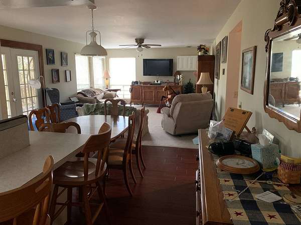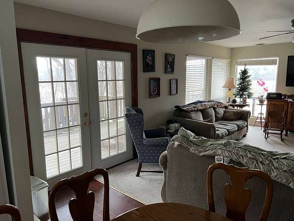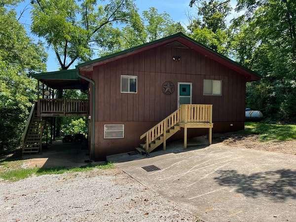 Quaint, River Cabin Feel with dark cedar siding and wood elements. Main Level has open kitchen, dining, family room, 2 bedrooms, 1 full bath & a 1/2 bath & walk-out covered deck that could easily be screened in. Walk-out Basement has a large room that could be a 3rd bedroom or family room, full bath and utility room. Cabin has Central HVAC with humidifier, private well & septic and new metal roof in 2014. The 30'x40' detached insulated garage with loft for plenty of storage has HVAC heat pump with electric backup. Property has 100 feet of river frontage. (11600 property must sell with the detached garage but could include the open machine shed depending on buyer preference.) All buildings are above the flood plain.Footnote Current Ownership is 3 adjoining properties when combined are just under 18 acres with 3 houses. 11600 (Brown colored house), Listed separately. 11608 (Grey colored house) Listed separately. 11638 (Tan colored house on bluff) with 2 cabins, 2 private wells, electric, pavilion and boat ramp. It is not currently listed for sale but maintains an easement, private boat ramp, two additional cabins and the history of what once was Driftwood Cabins but is now the family compound. If the desire is to control all the property and its potential, offers will be considered. Please call for appointment as there is an existing gate that is currently closed that will be removed when any of the property sells.
