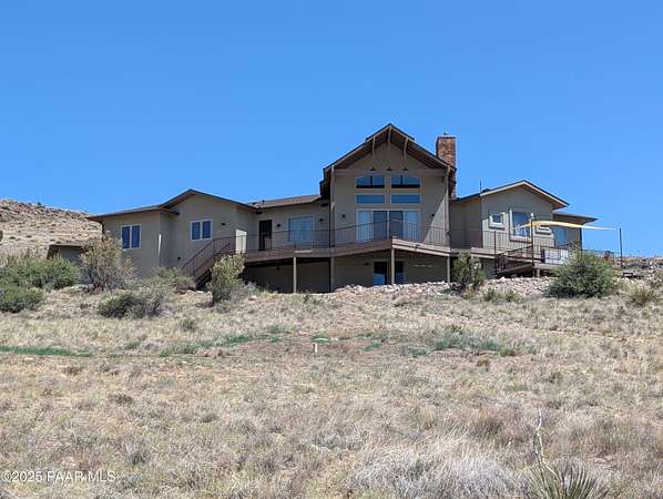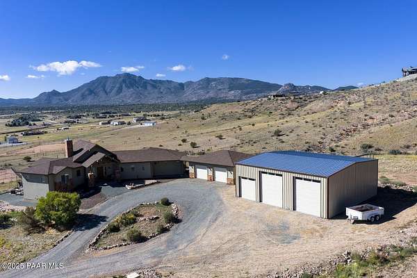 Welcome to the ultimate Arizona retreat where timeless craftsmanship meets high-end living in the coveted Williamson Valley Ranch community. This custom-built Capistrano single-level home is thoughtfully designed for privacy, function, and style on just over 7 acres of pristine land.Custom Build - No detail overlooked in this thoughtfully designed home with superior finishes throughout. Oversized 2 car garage and oversized RV Garage - Bring your toys! Fully enclosed and ready for your motorhome, boat, or workshop needs. Private Spa - Unwind under the stars in your own hot spa. Private well with 5 yr warranty. Whole-Home Stereo & Alarm System - Smart living meets peace of mind with built-in audio and security. Spacious layout with high ceilings, elegant finishes, and warm natural light. Panoramic Views & Open Space - Enjoy Arizona's breathtaking sunsets and wide-open landscapes.This home is perfect for those who want the space and privacy of ranch living without sacrificing comfort, style, or convenience. Whether you're entertaining, escaping the city, or settling into your forever home. If you like horses, deer, antelope, cool mornings and mountain views this is your new place! This 7 ACRE LOT is elevated with views From Granite MNT to Prescott to Mingus. Overlooks Williamson Valley Ranch. Energy efficient with Owned 5500kw Solar, 10k Generac backup system keeps water from well flowing and fridge /freezers cold even if the electricity goes out. Huge Seperate 3 bay 44 X 46, 2024sf RV garage big enough for a 42' coach or 6 trucks or all the toys. Spacious interior boasts high ceilings, hardwood fllooring and baseboards, great room floorplan with real wood fireplace featuring Arista insert with heatilator. Kitchen boasts a huge walkin butler pantry, double ovens, granite counter tops troughout and large breakfast bar island. Walkout basement for easy access to all mechanics. Spa and firepit area for cool relaxing evenings. Making life easy is Central Vacuum both in the house and garage, Security system and sound system. Whole home water filter, soft water system and R/O in the kitchen. This home is a must see!! Additiona 20ac avail for the perfect horse ranch retreat.