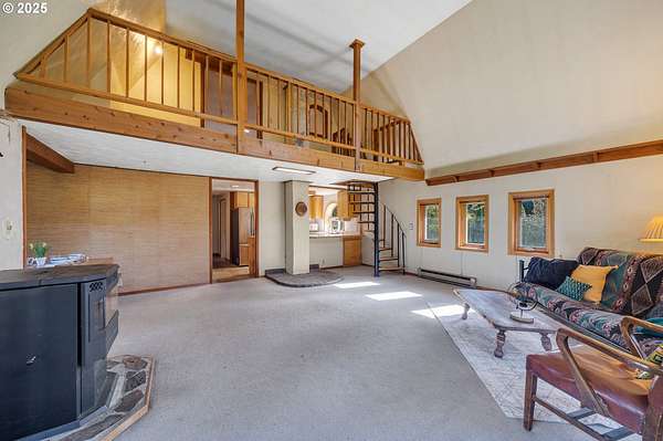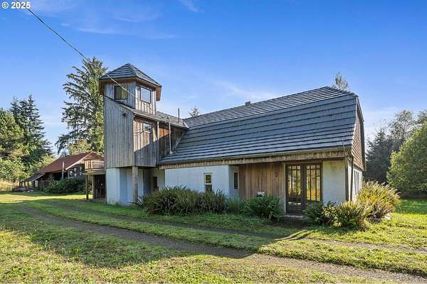 Fairytale Farmstead! Hidden from the road by a stand of sturdy native trees, this storybook home will make you smile the moment you turn up the drive. Originally a dairy barn- creatively converted to a residence in the 1980s- this fairytale abode adds a few delightful plot twists to its charming history. The whimsical north turret offers functional space for a full en suite upstairs + a sunny, quiet ladder-access loft- perfect for reading, painting, or letting down your hair (Rapunzel-style). On the main level, Hansel and Gretel can rest easy knowing the old wood stove has been replaced with an efficient pellet stove that warms the open great room, where living, kitchen, and dining spaces flow together for merry gatherings and happy endings. Goldilocks would approve of the rest of the main level's thoughtful layout: a second bedroom, a cozy office (the window may be a bit small for egress- unless you're Thumbelina), plus a full updated bathroom, laundry, and mudroom. Outside, the acreage is ready for adventure: a large garden (ideal for growing pumpkin carriages), pasture, barn for your woodland friends, and a secure finished workshop fit for any huntsman's projects. The rooftop Trex deck and enclosed sunroom offer year-round spots to lounge, dream, and survey your magical kingdom: the perfect place to begin your next chapter.
