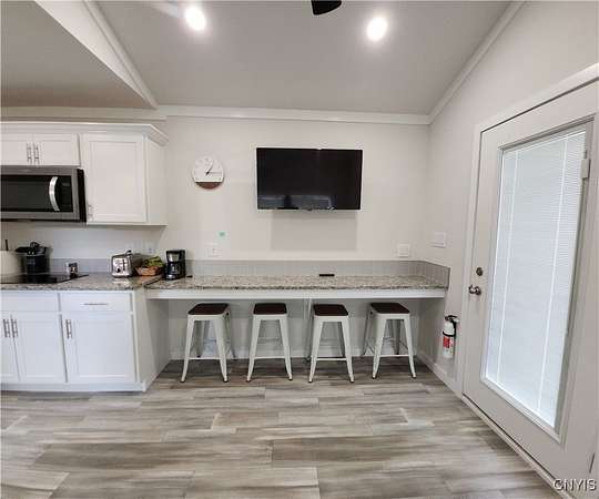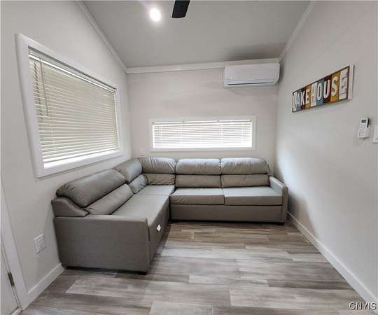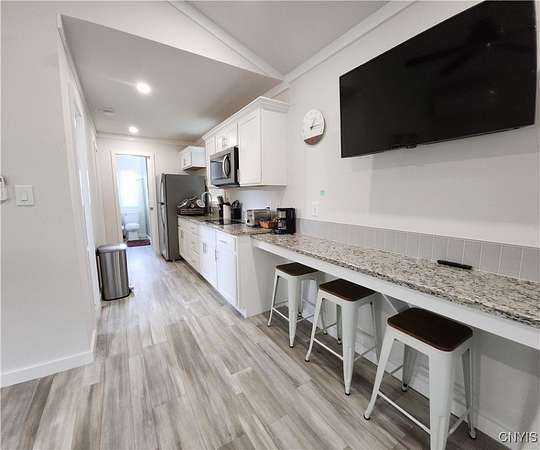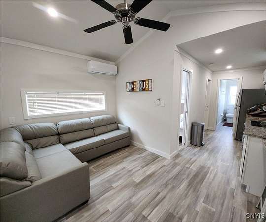 Discover this brand-new, turnkey mobile lakeside retreat, perfectly situated on the picturesque shores of Henderson Bay, Lake Ontario. This fully furnished 2-bedroom, 1-bathroom mobile cottage is ready for you to enjoy. It features an open-concept living and kitchen area with granite countertops, stainless steel appliances, and sleek white cabinetry. The home is climate-controlled with modern mini-split units offering both air conditioning and heating. Relax and take in stunning sunsets from the screened front porch, steps away from the Lake. The property includes access to private docks, a clubhouse, and on-site laundry facilities. As an added bonus, the cottage comes with the full 2025 season-valued at $3,250-which covers public water, septic, and trash services. Nestled in a peaceful, well-maintained RV resort community, this property is the perfect choice for a serene lakeside escape, whether for seasonal living or a vacation retreat. The resort also offers a rental pool option, allowing you to earn passive income when you're not using your cottage. Call today!
