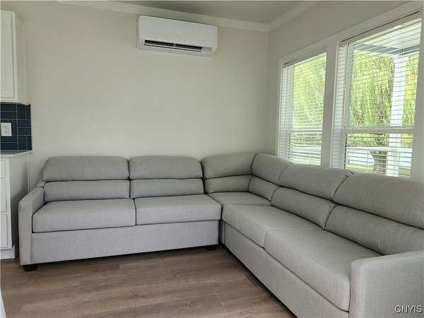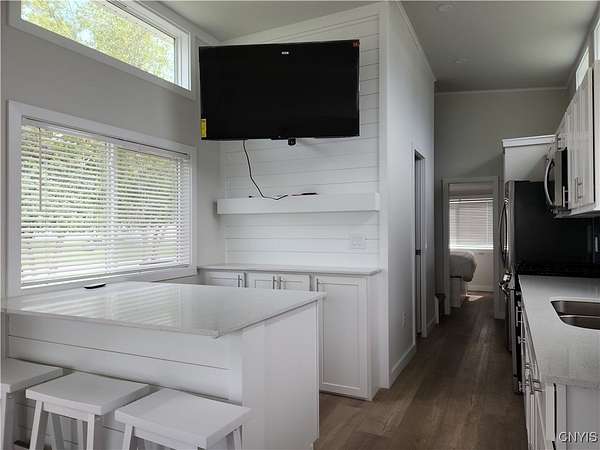 What an opportunity!!! Check out this brand-new, turnkey mobile lakeside Double Decker, perfectly situated on the picturesque shores of Henderson Bay, Lake Ontario. This fully furnished 1-bedroom, 1-bathroom mobile cottage is ready for you to enjoy. It features an open-concept living and kitchen area with granite countertops, stainless steel appliances, and sleek white cabinetry. The home is climate-controlled with modern mini-split units offering both air conditioning and heating. Innovative upper and lower deck offering 260 SF of outdoor living space. The property includes access to private docks, a clubhouse, and on-site laundry facilities. As a bonus with a 2nd year commitment, the cottage comes with a full season-valued at $3,250-which covers public water, septic, and trash services. Nestled in a peaceful, well-maintained RV resort community, this property is the perfect choice for a serene lakeside escape, whether for seasonal living or a vacation retreat. The resort also offers a rental pool option, allowing you to earn passive income when you're not using your cottage. Call today!