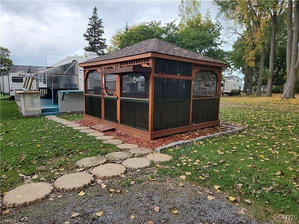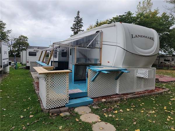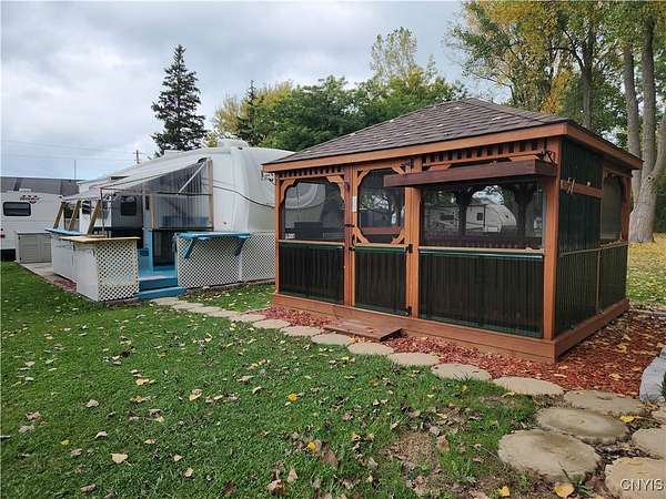 Here's your chance to own a charming lakeside retreat on the picturesque shores of Henderson Bay, Lake Ontario. This well-maintained 1-bedroom, 1-bathroom mobile cottage is nestled in a peaceful and beautifully kept RV resort community-perfect for seasonal living or a relaxing vacation getaway. Inside, the home offers a cozy living and kitchen area with quartz countertops and full climate control for year-round comfort. Outside, enjoy a spacious attached deck and a large screened-in gazebo, which offers flexible options for enclosure and extended use. The property includes access to private docks, a welcoming clubhouse, and on-site laundry facilities. The estimated annual park fee is $3,250, which covers public water, septic, and trash services. As an added bonus, the resort offers a rental pool option, allowing you to earn passive income when you're not using the cottage. Don't miss this opportunity to own a serene lakeside escape. Call today or visit for more information.