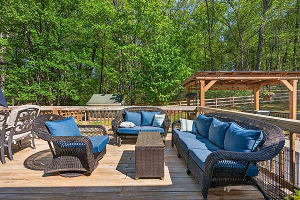 Est $4,016/mo5BR, 3.5BA ranch set on 6 acres offering a bright, open layout with excellent flow throughout. The main-level primary suite features private access to a spacious sunroom and deck, ideal for relaxing in a peaceful setting, along with a large en-suite bathroom complete with a soaking tub. The finished basement provides versatile living space with two bedrooms, a full bath, and multiple flex areas perfect for a media room, recreation space, home gym, or more. Upgrades include luxury LVP flooring, quartz countertops throughout, stainless steel appliances with double oven, whole-home generator, new fencing, and a storage shed.