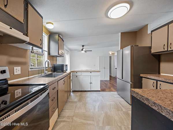 - Dishwasher, Electric Oven, Refrigerator, Vented Exhaust Fan